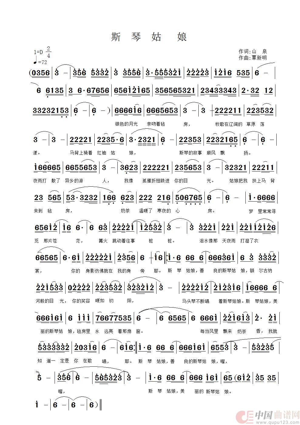 曲谱:斯琴姑娘