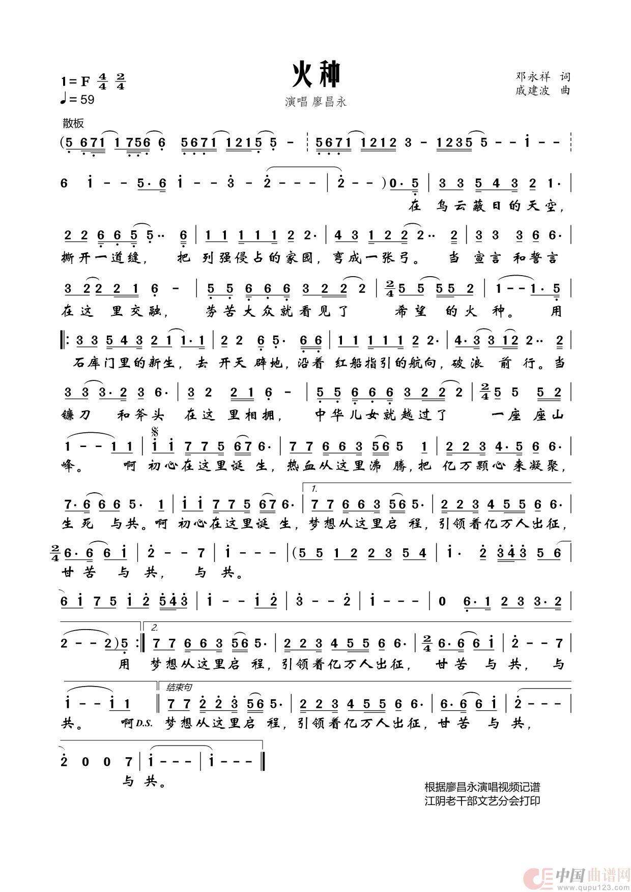 关于《火种》曲谱的评论
