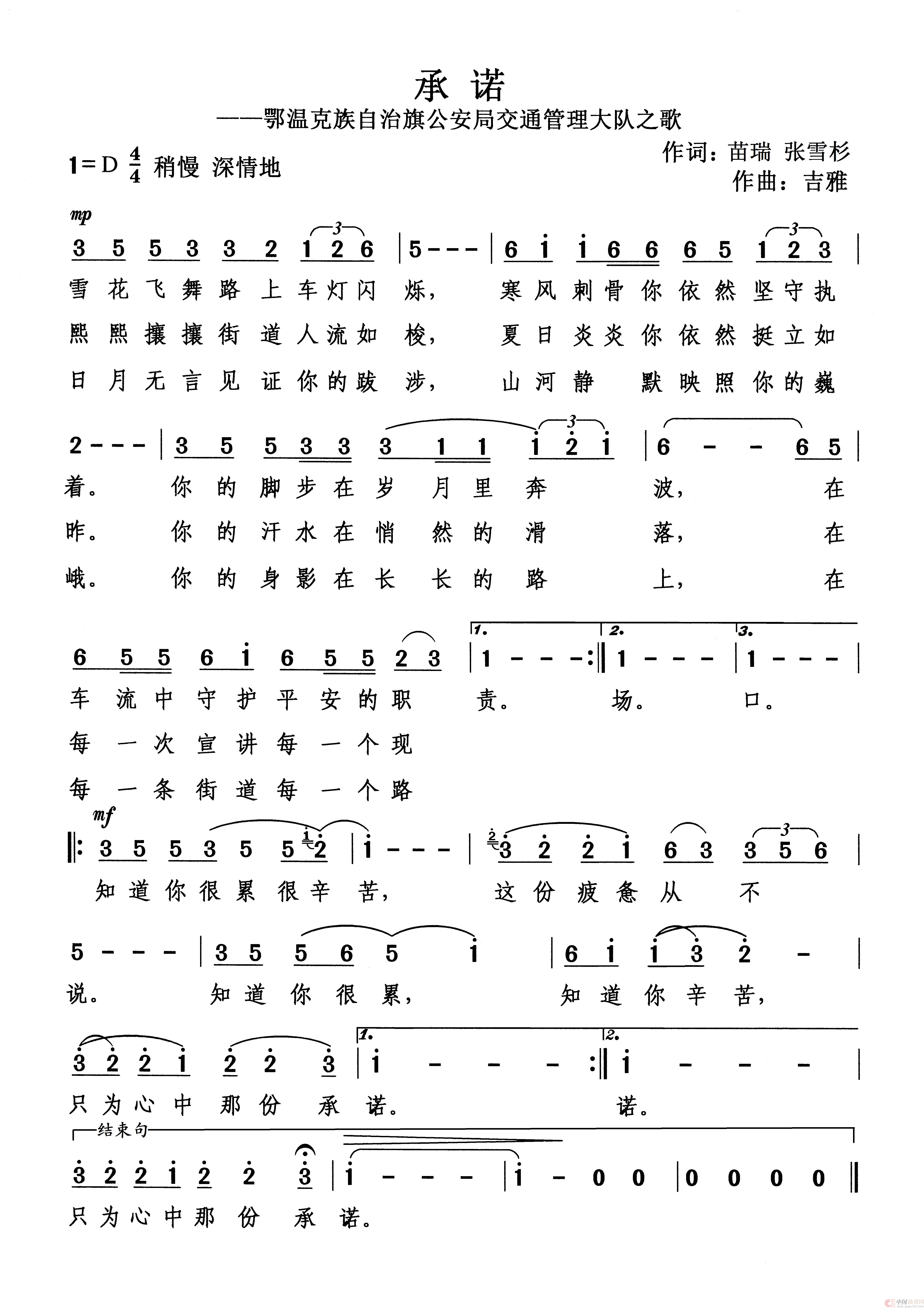 关于《《承诺——鄂温克族自治旗公安局交通管理大队之歌》》曲谱的评论