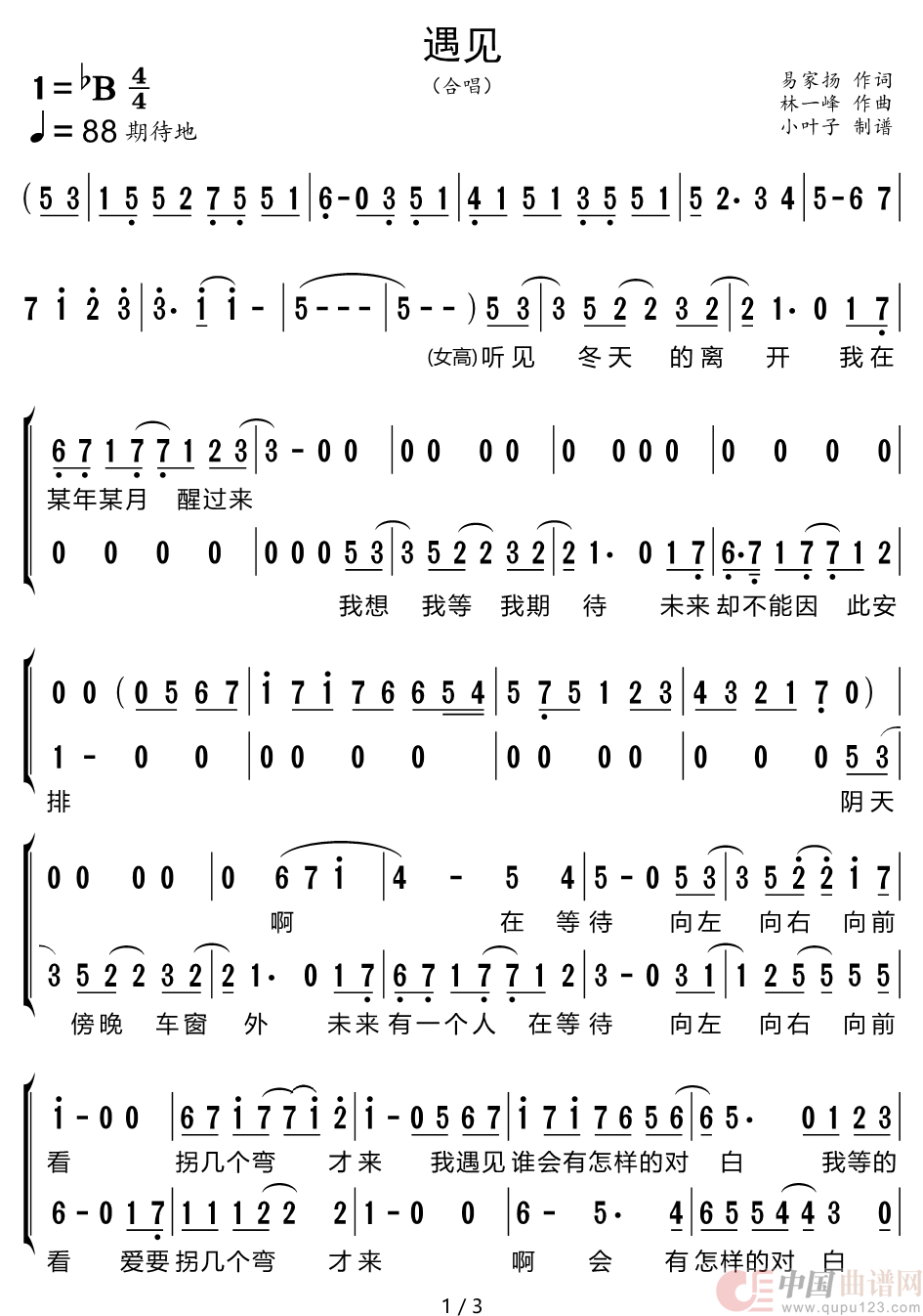 遇见(二声部合唱简谱)(1)_原文件名:遇见_Page1.png