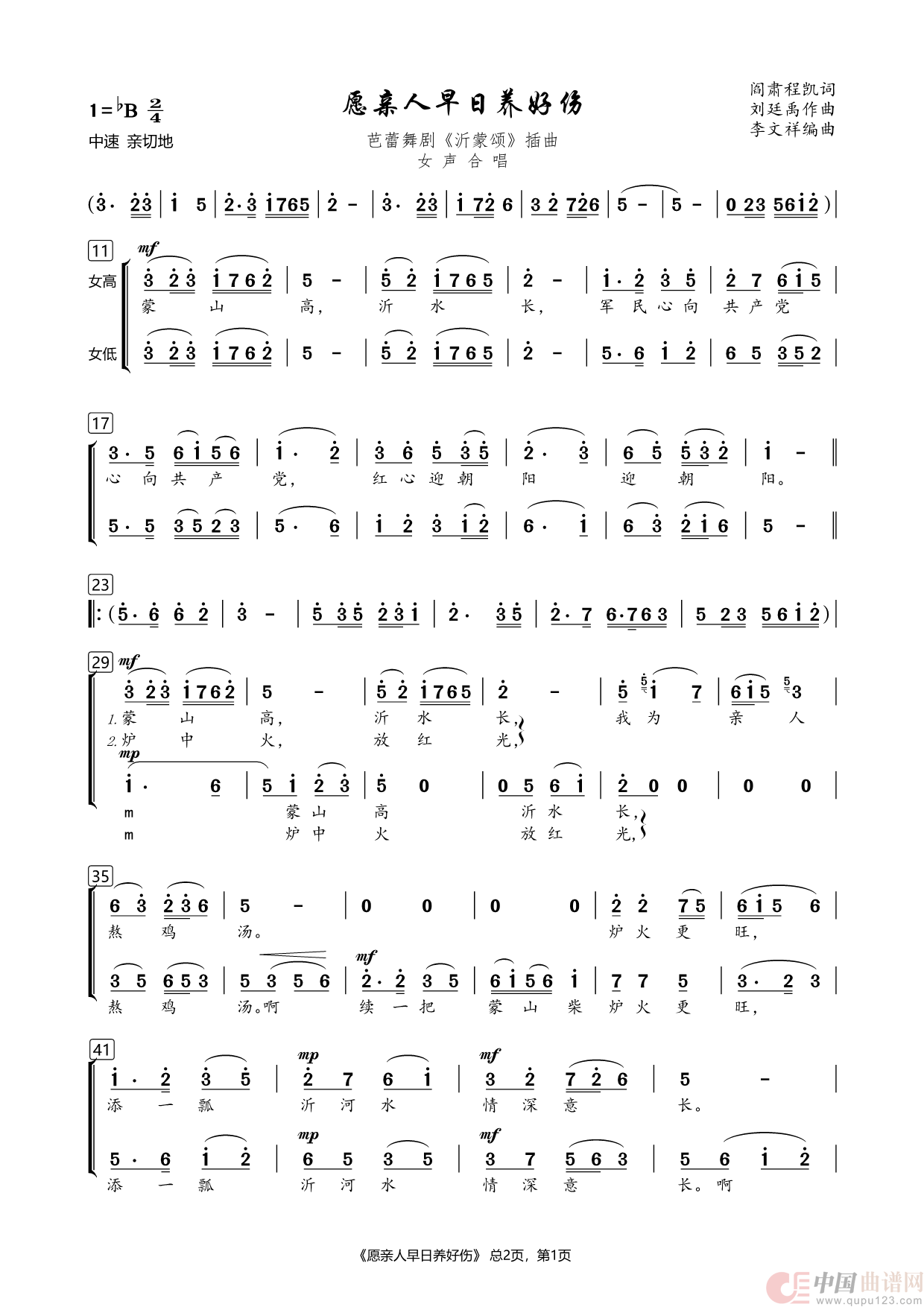 提示:在曲谱图片上单击右键,选择"图片另存为..."即可将曲谱保存到您的电脑中,打印时候可将图片插入到WORD中,调整合适大小打印即可。