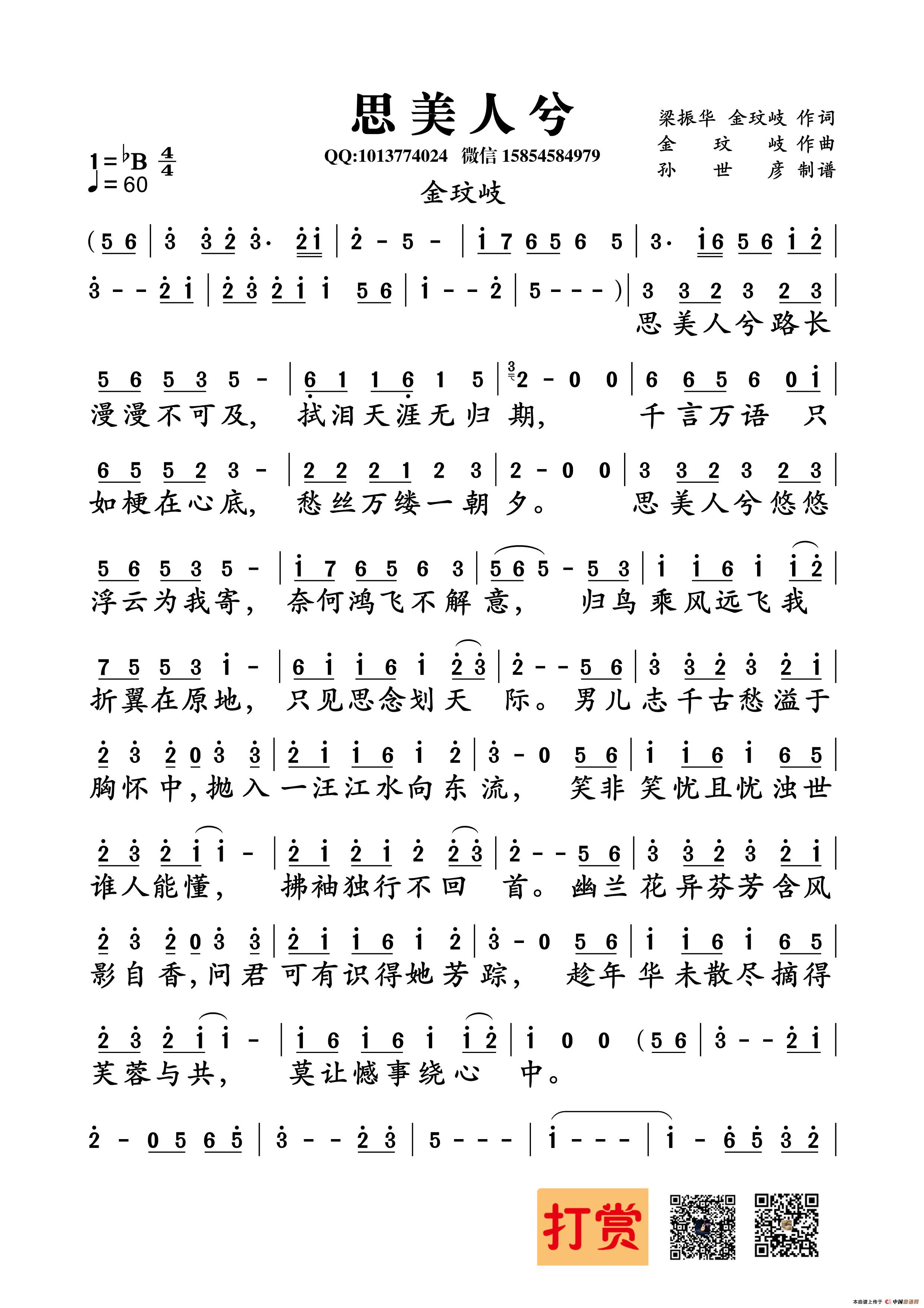 提示:在曲谱图片上单击右键,选择“图片另存为...”即可将曲谱保存到您的电脑中,打印时候可将图片插入到WORD中,调整合适大小打印即可。