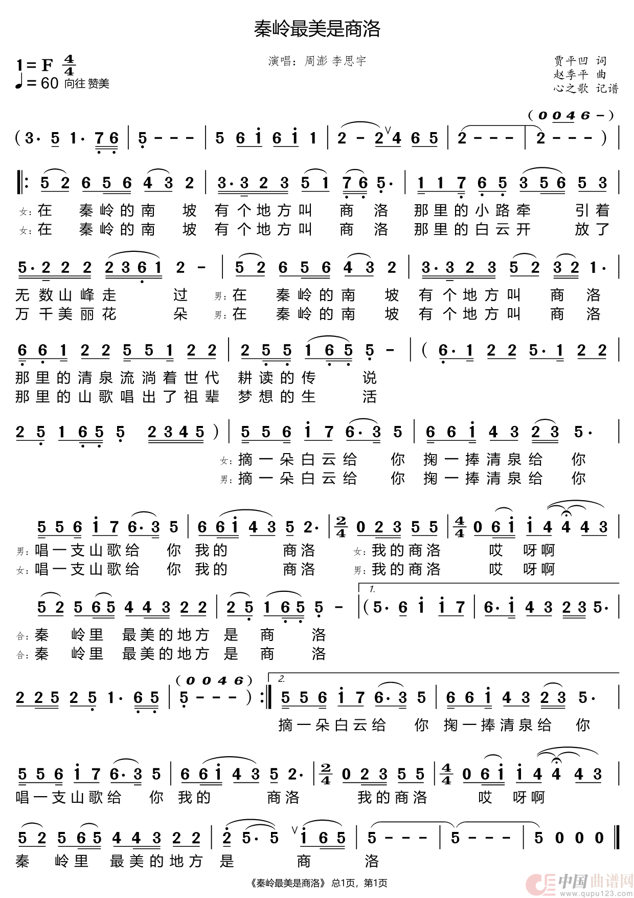 关于《秦岭最美是商洛》曲谱的评论
