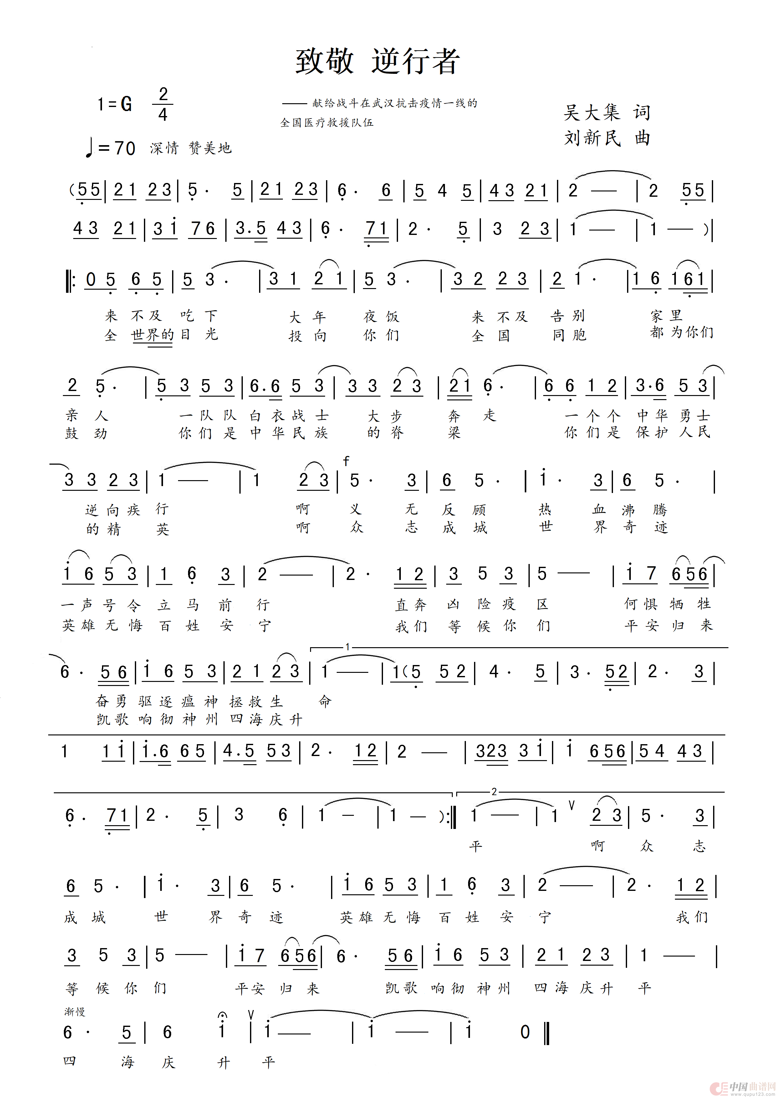 关于《致敬 逆行者》曲谱的评论