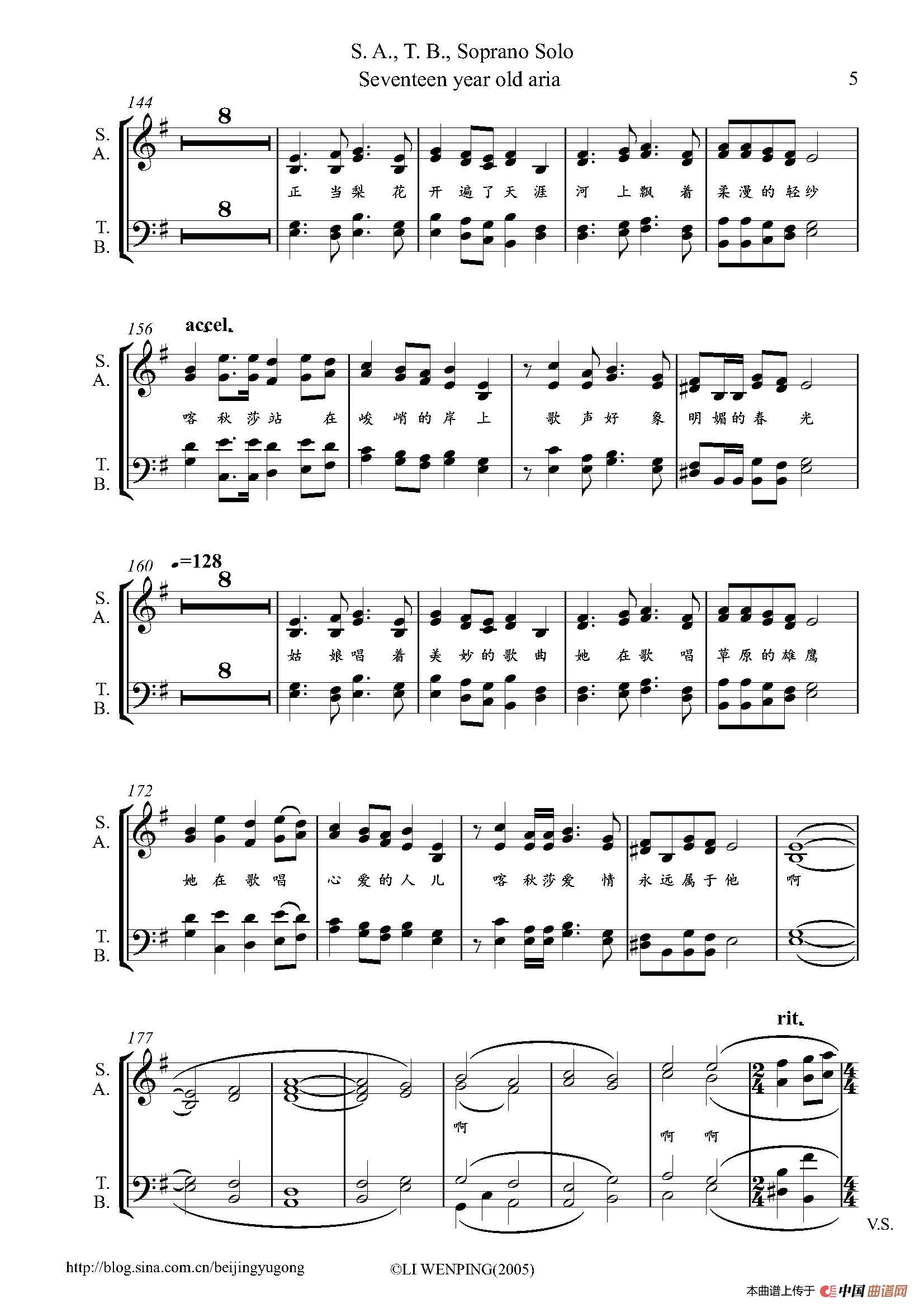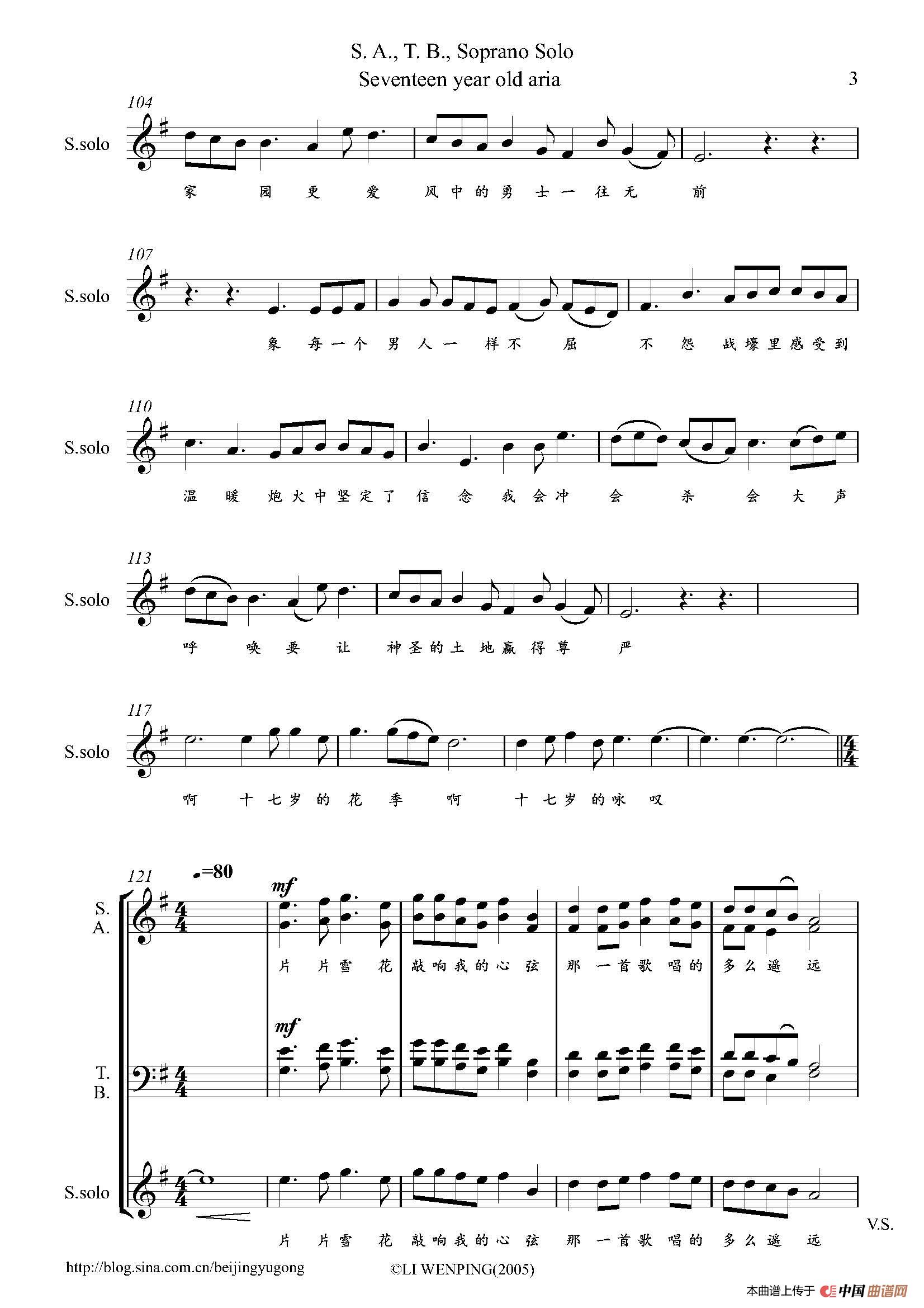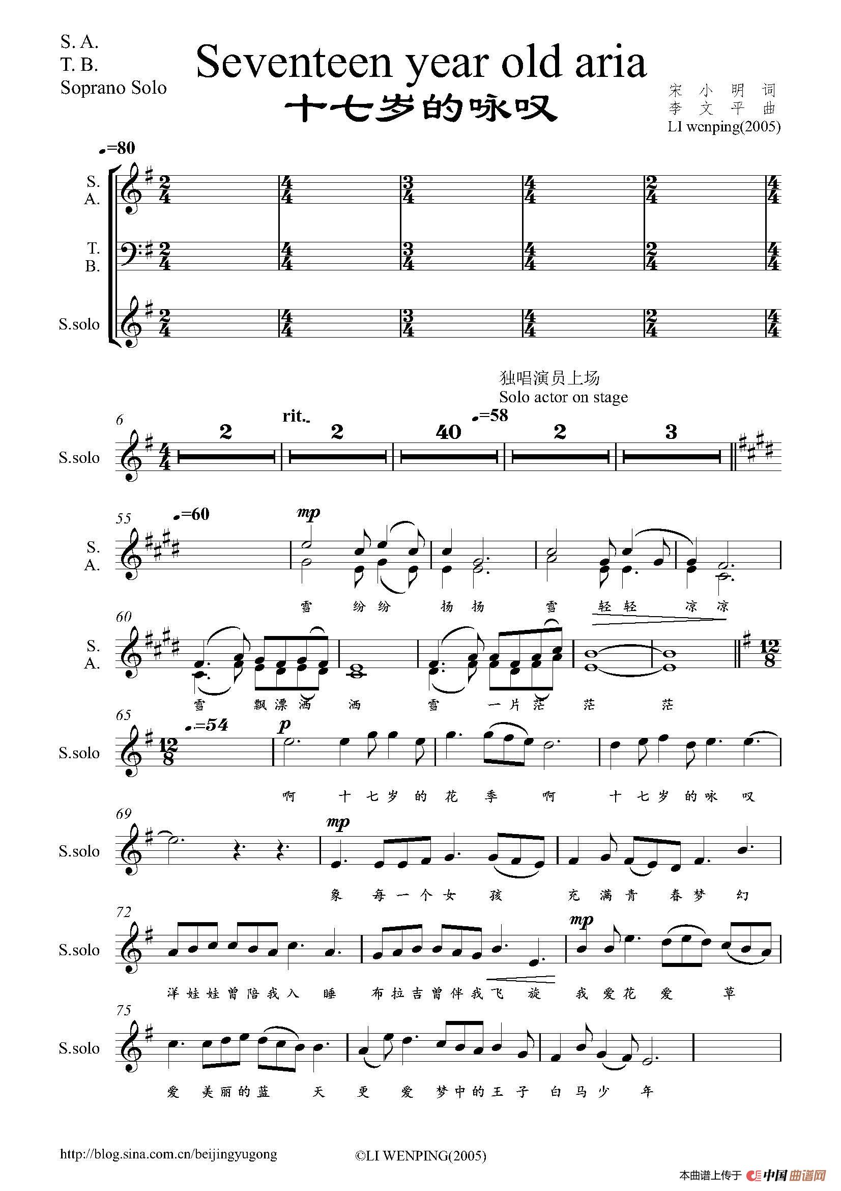 《十七岁的咏叹 (女高音独唱与合唱谱)》文本歌词