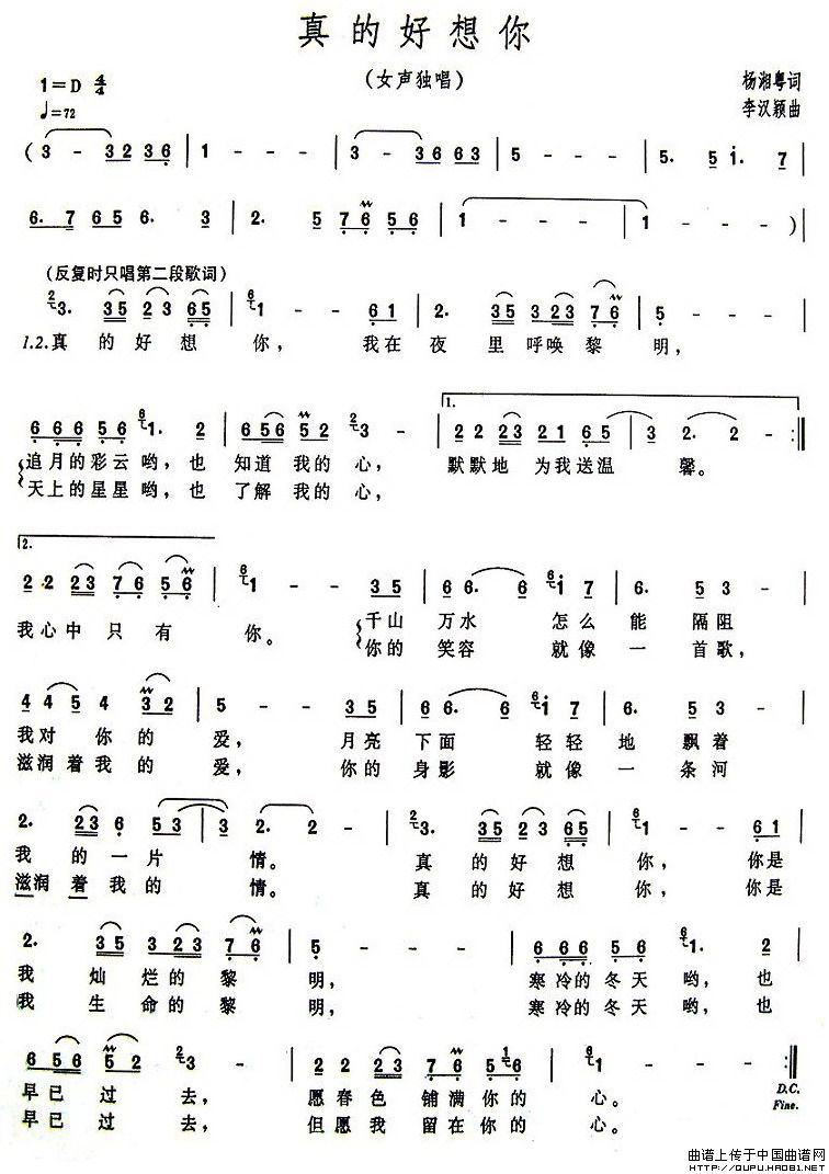 关于《真的好想你》曲谱的评论