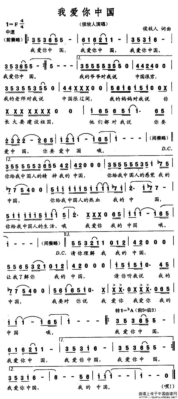 关于《我爱你中国》曲谱的评论