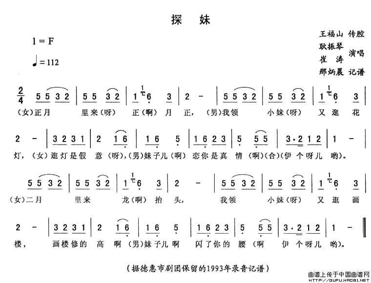 关于《探妹》曲谱的评论