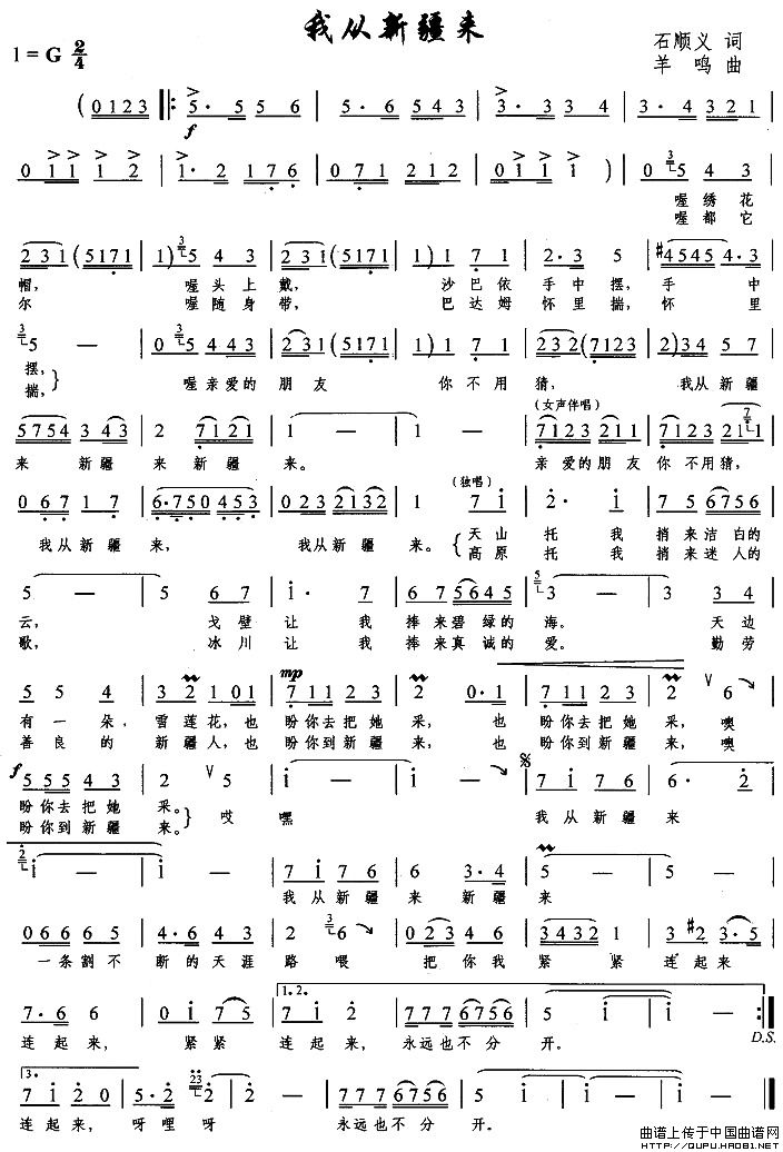 曲谱:我从新疆来