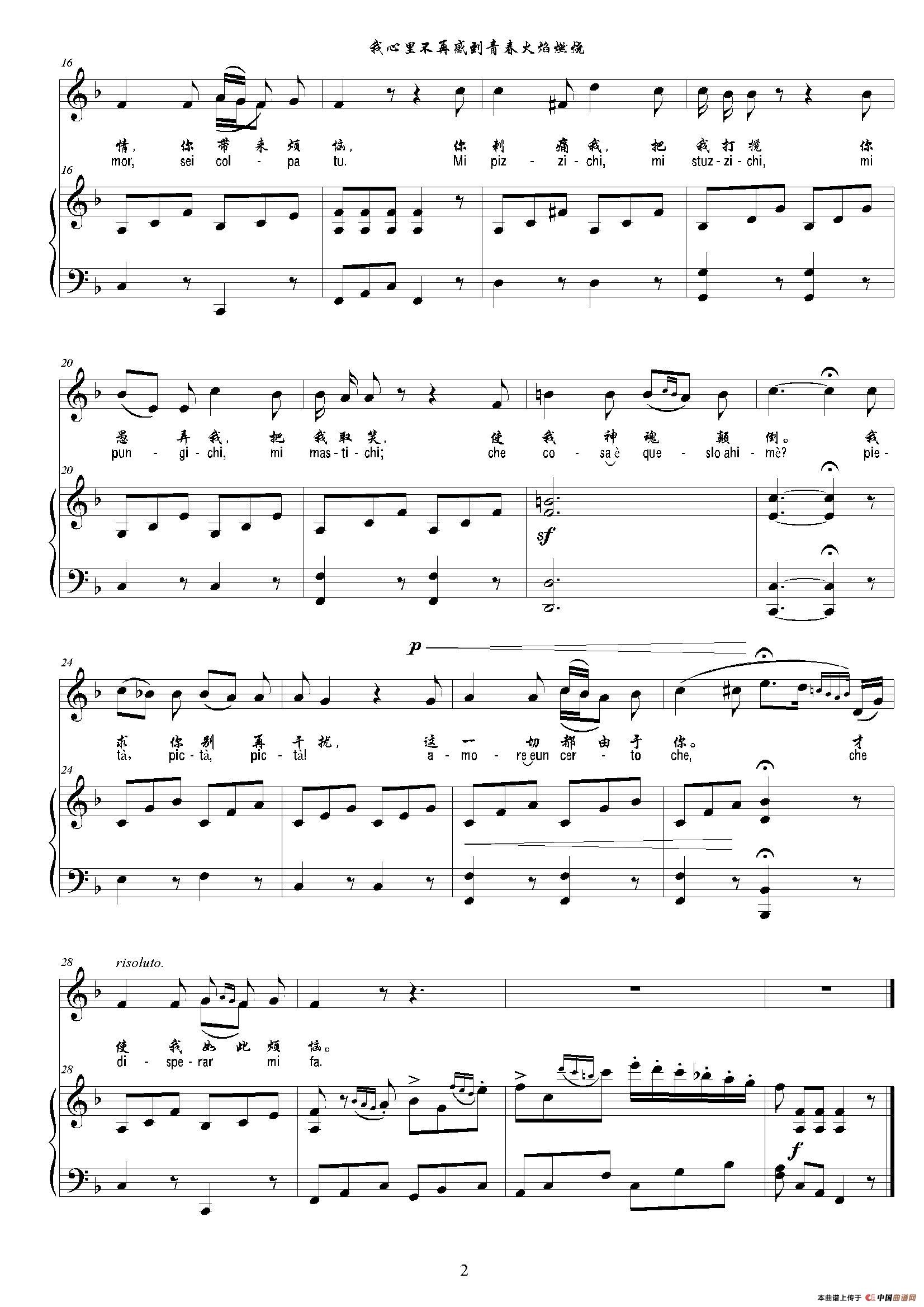 《我心里不再感到青春火焰燃烧》是由家意大利作曲家乔瓦尼·帕伊谢洛G.Paisiello(1740-1816)作曲,尚家骧编译。