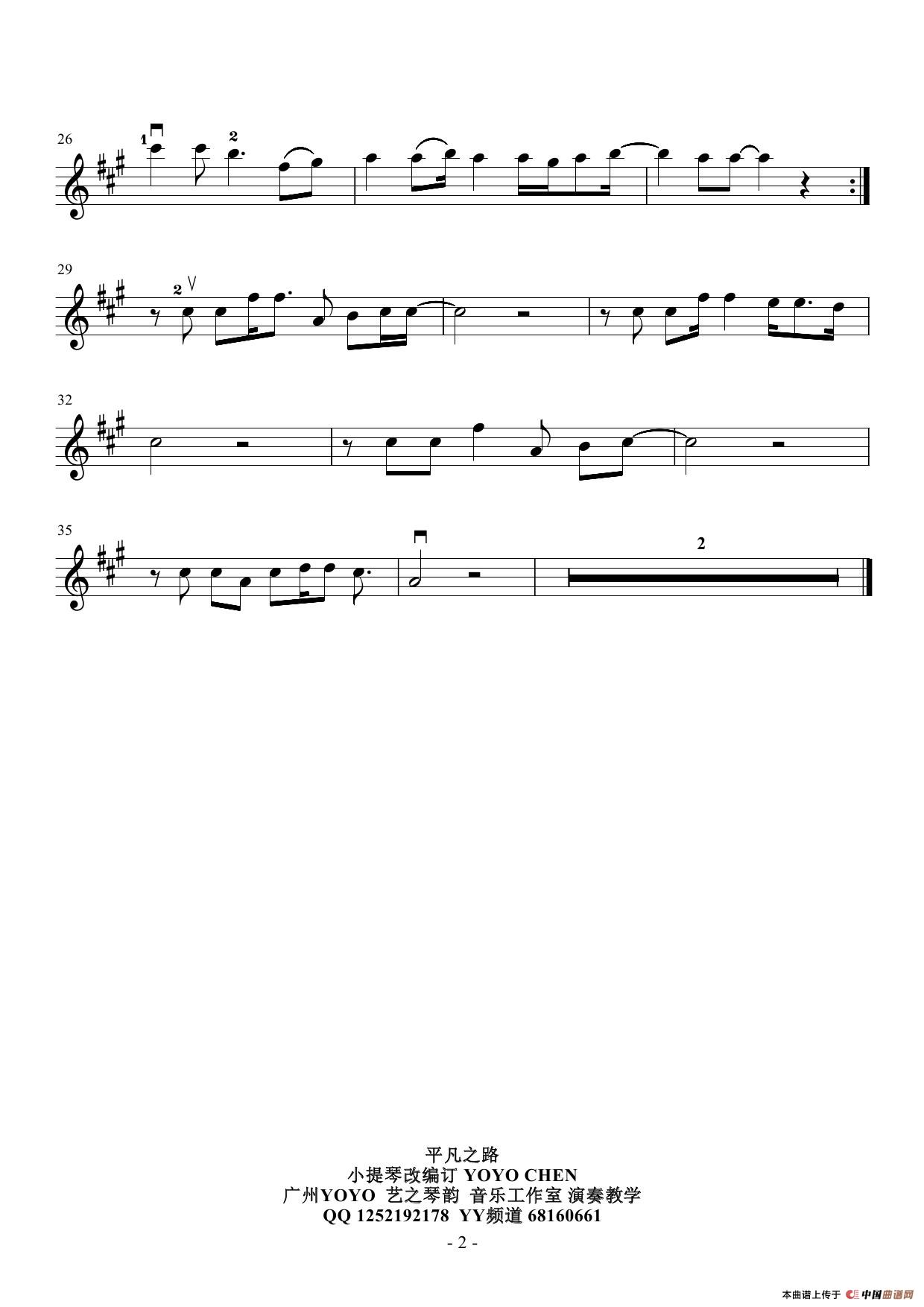 曲谱:平凡之路(小提琴谱)(电影《后会无期》主题曲)