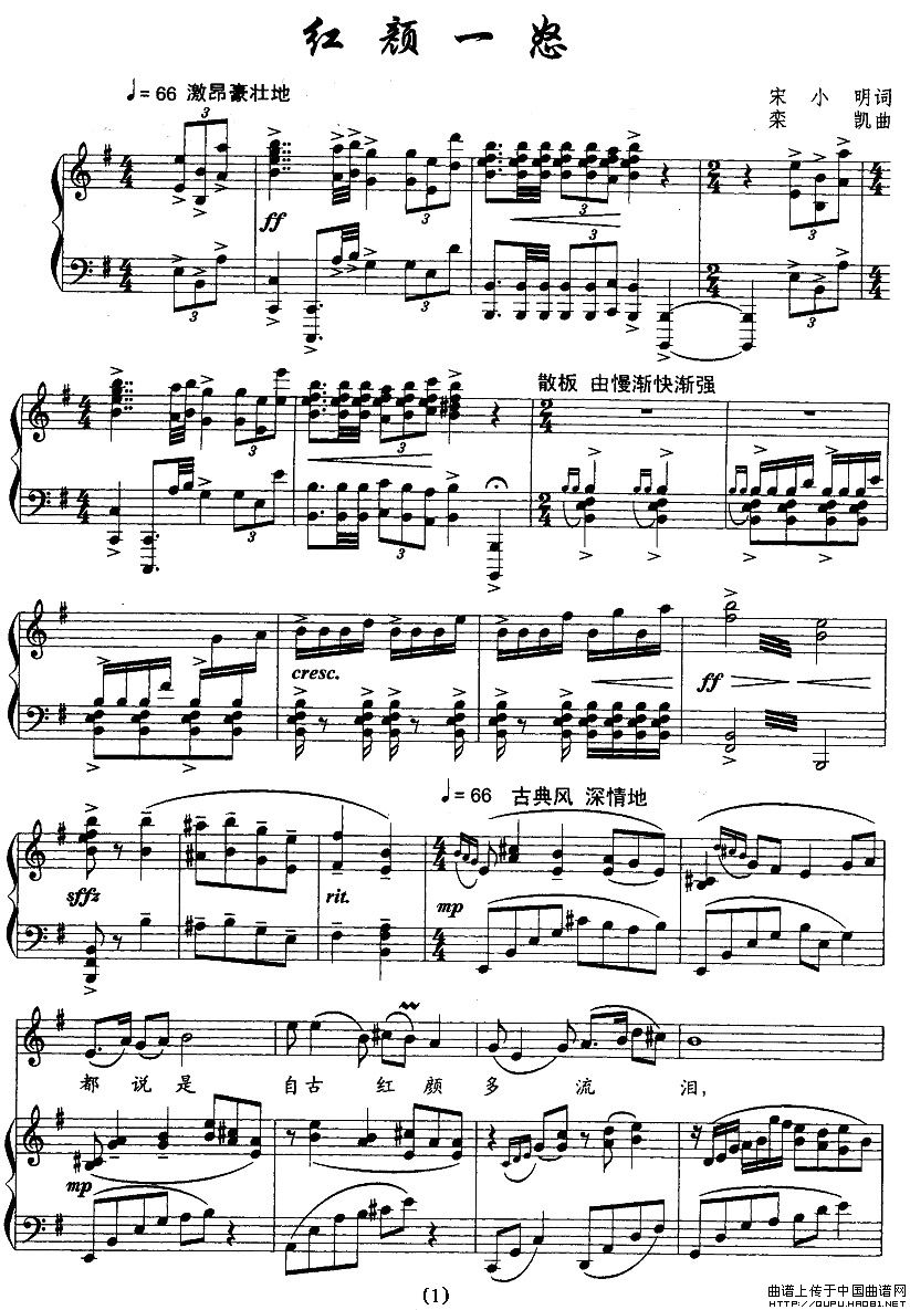 曲谱:红颜一怒(正谱)