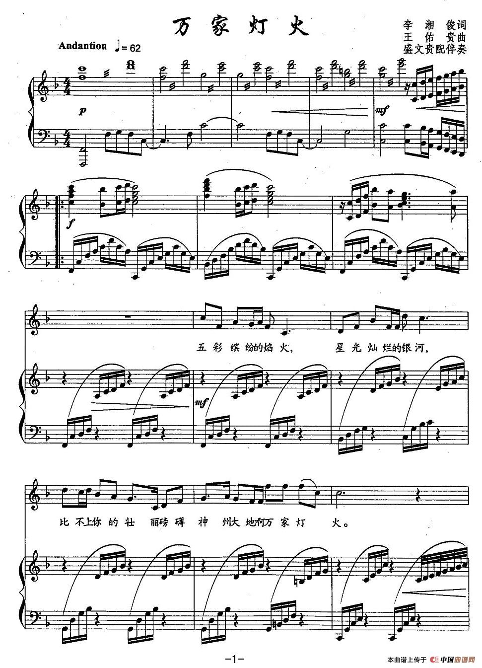 曲谱:万家灯火(李湘俊词 王佑贵曲、正谱)
