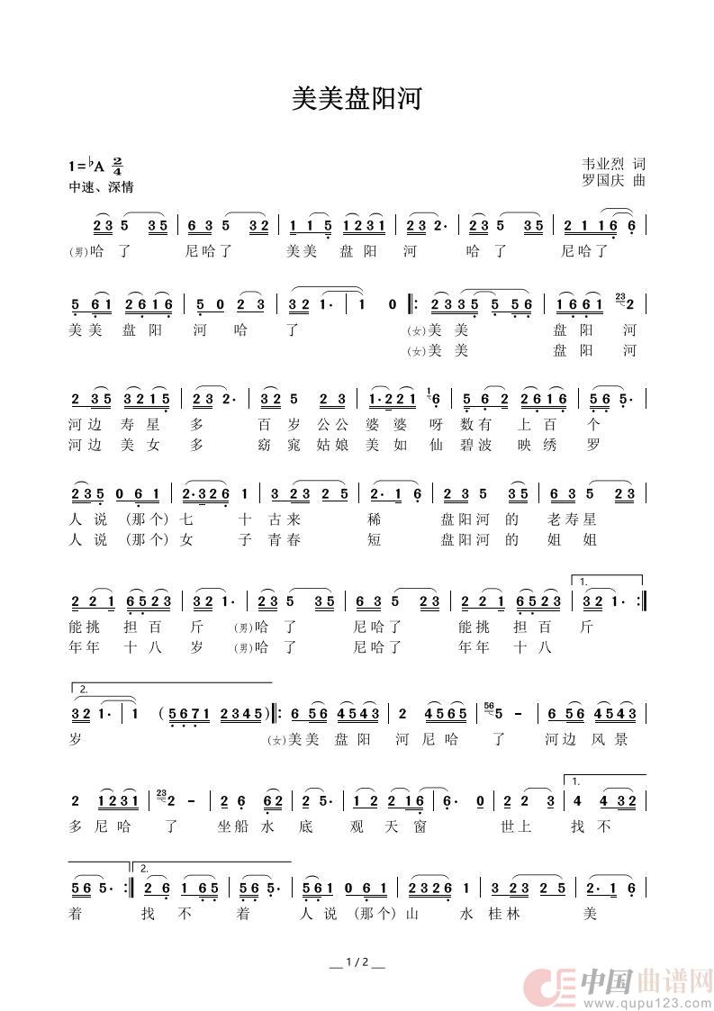 曲谱:美美盘阳河