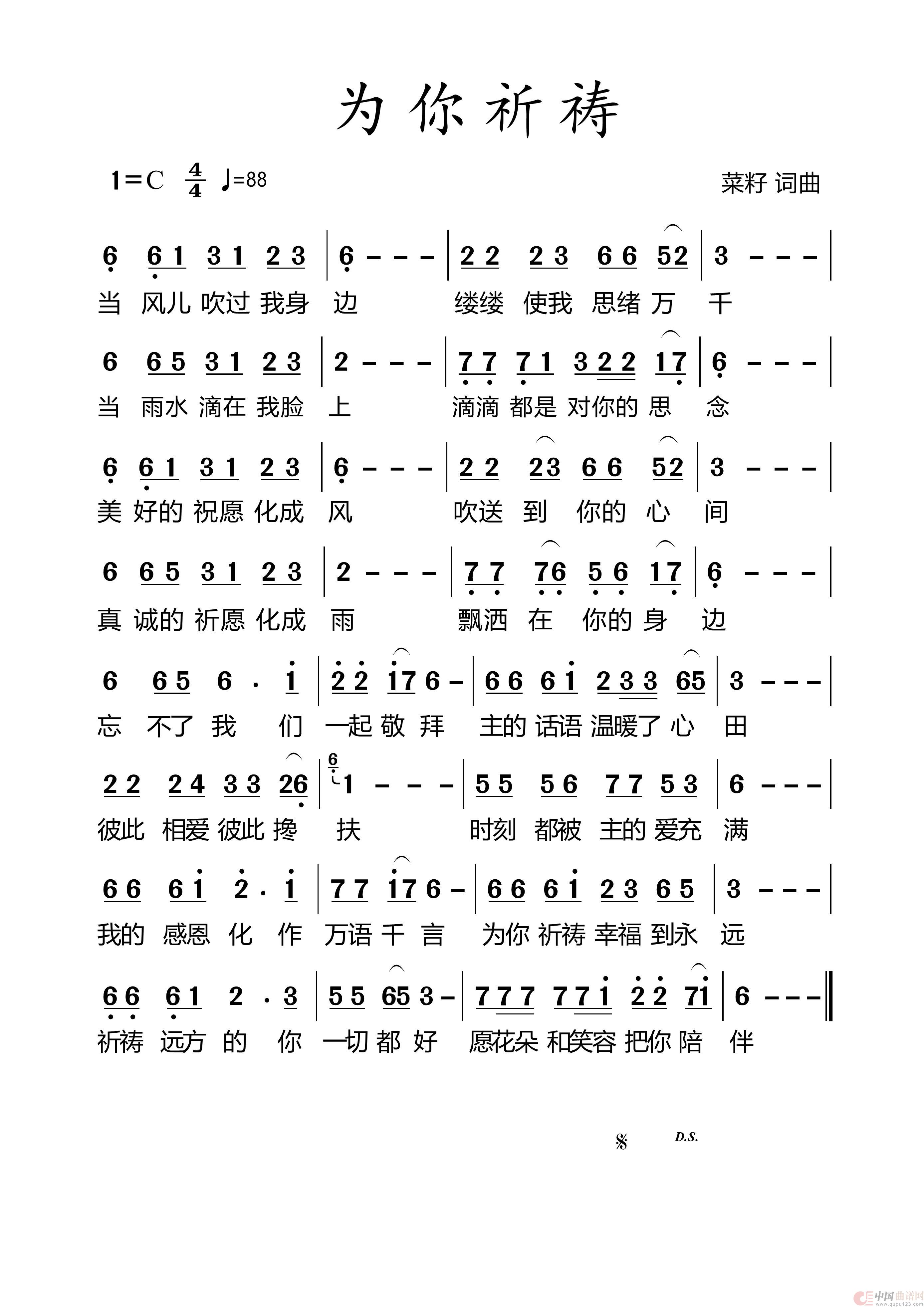 曲谱:701 为你祈祷
