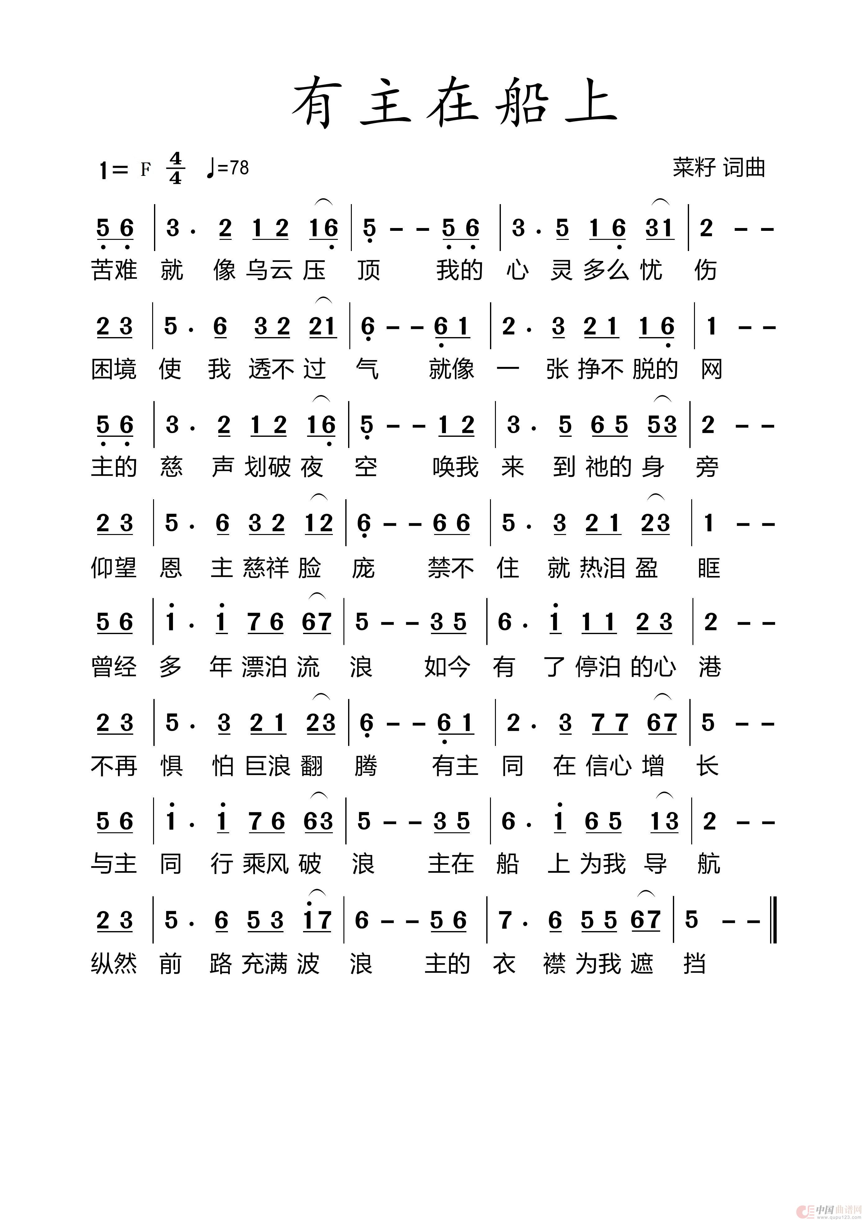 曲谱:702 有主在船上