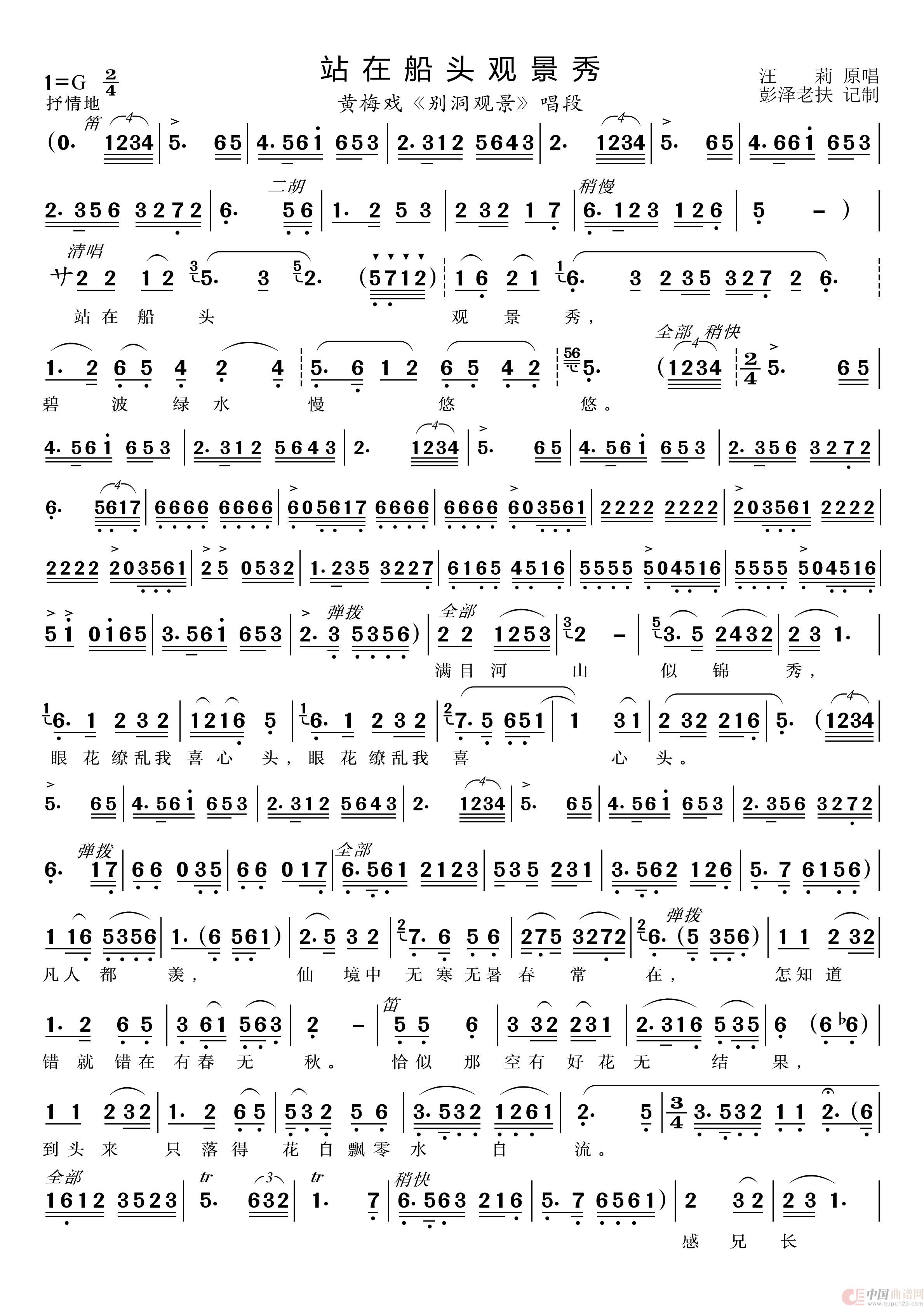 曲谱:站在船头观景秀(黄梅戏《别洞观景》唱段)