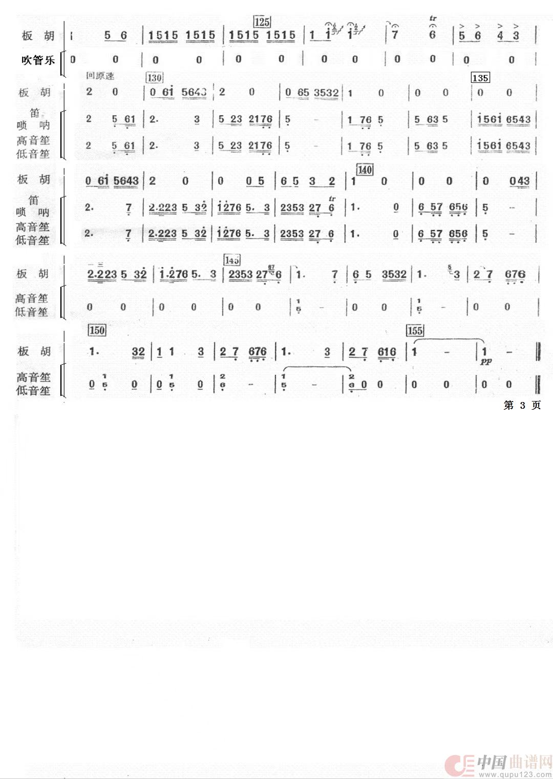 曲谱:板胡与乐队 大姑娘美 吹管乐分谱