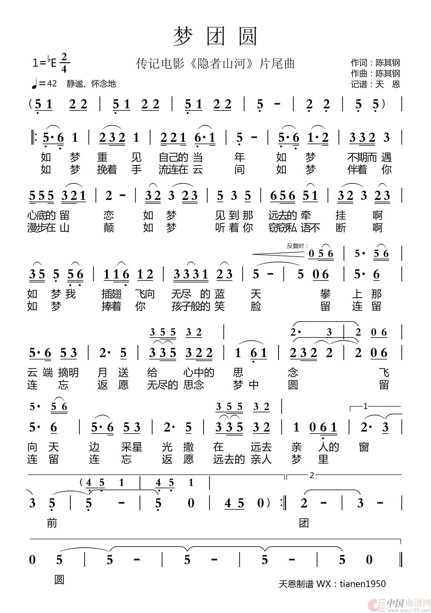 曲谱:梦团圆(传记电影《隐者山河》片尾曲)