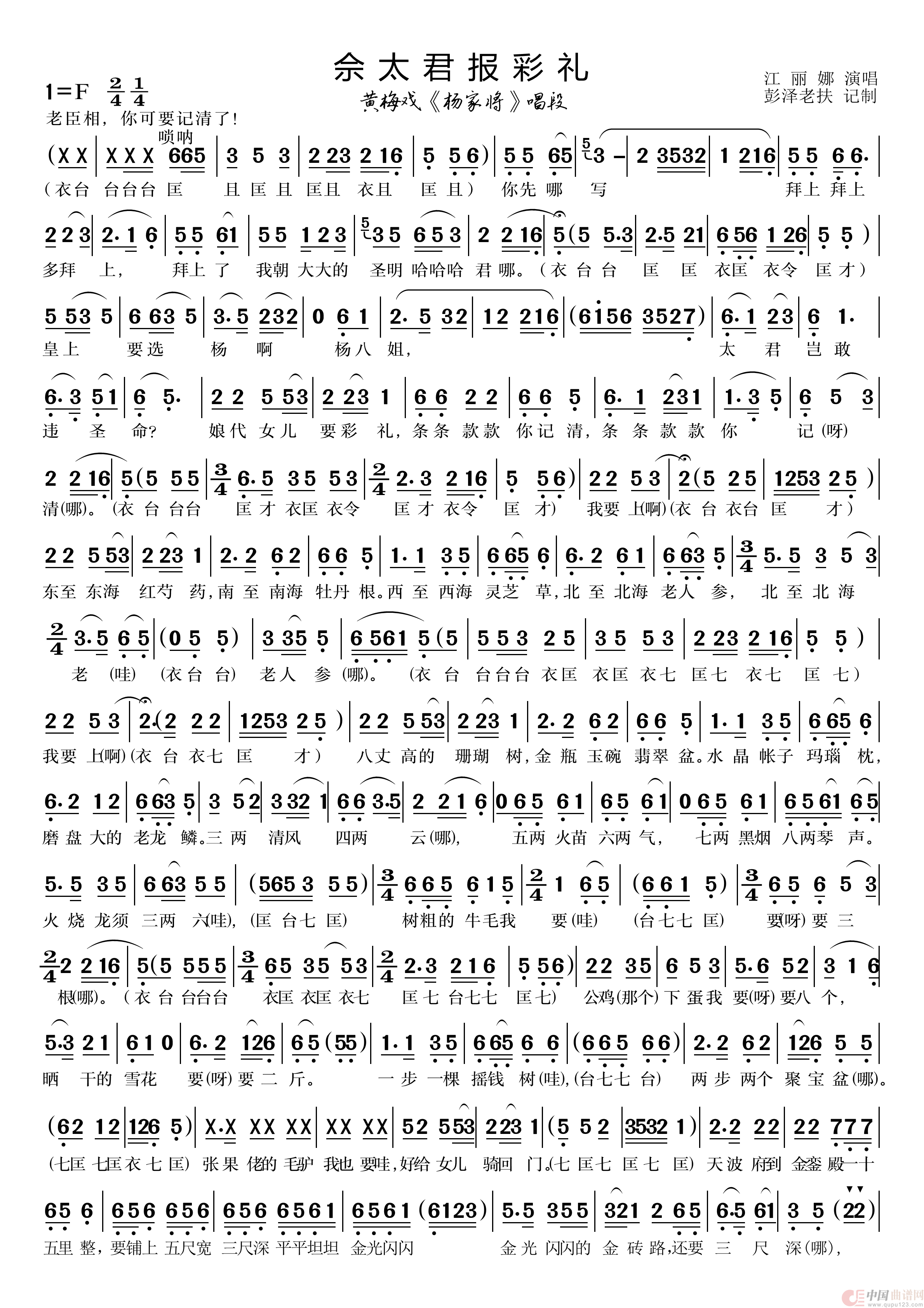 曲谱:佘太君报彩礼(黄梅戏《杨门女将》唱段)