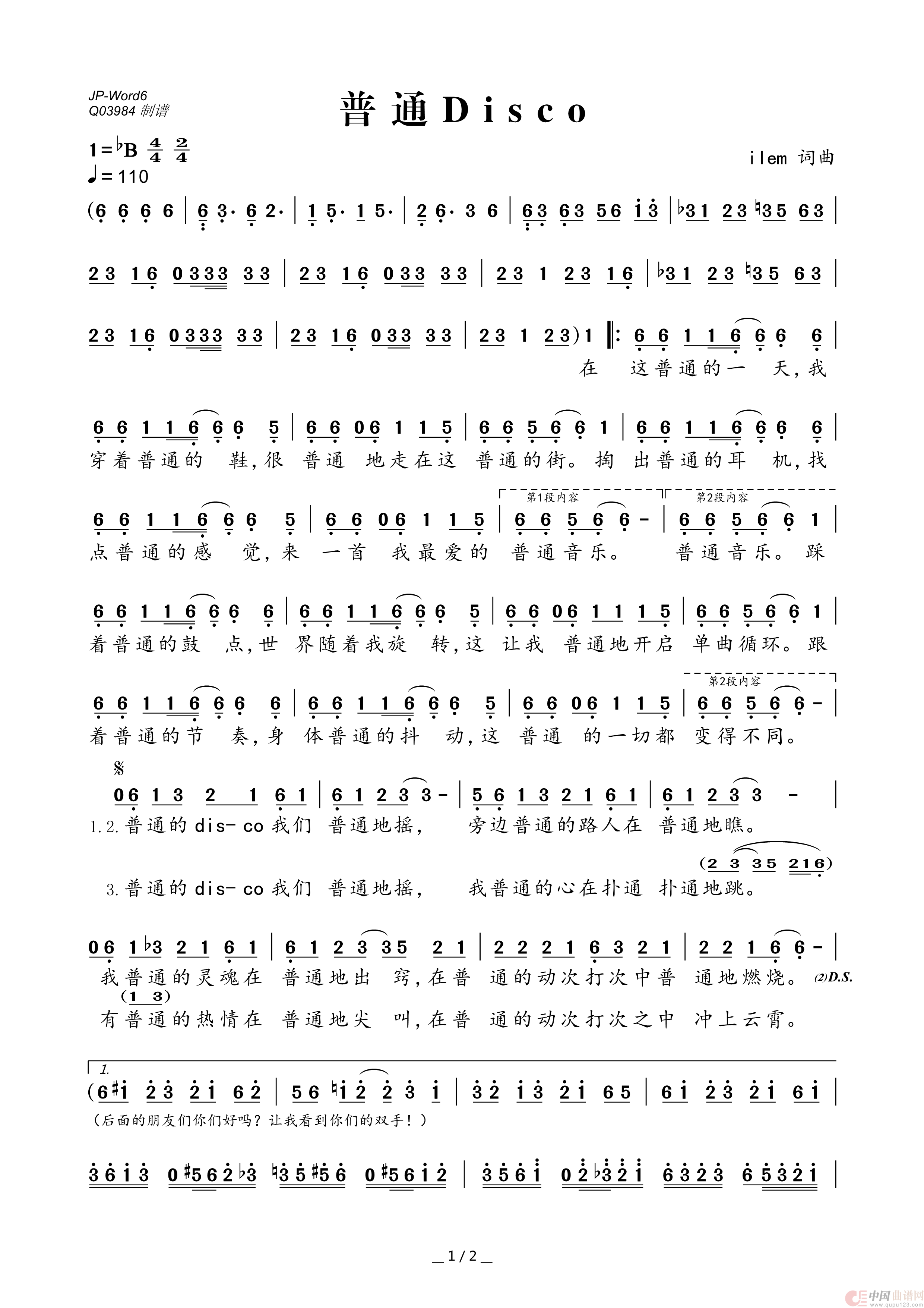 曲谱:普通DISCO
