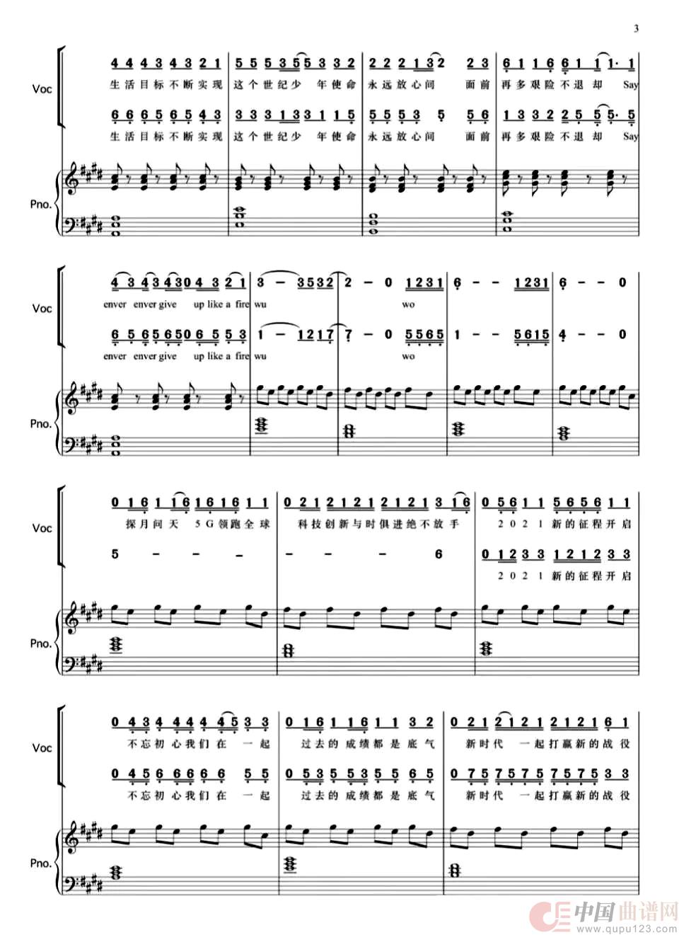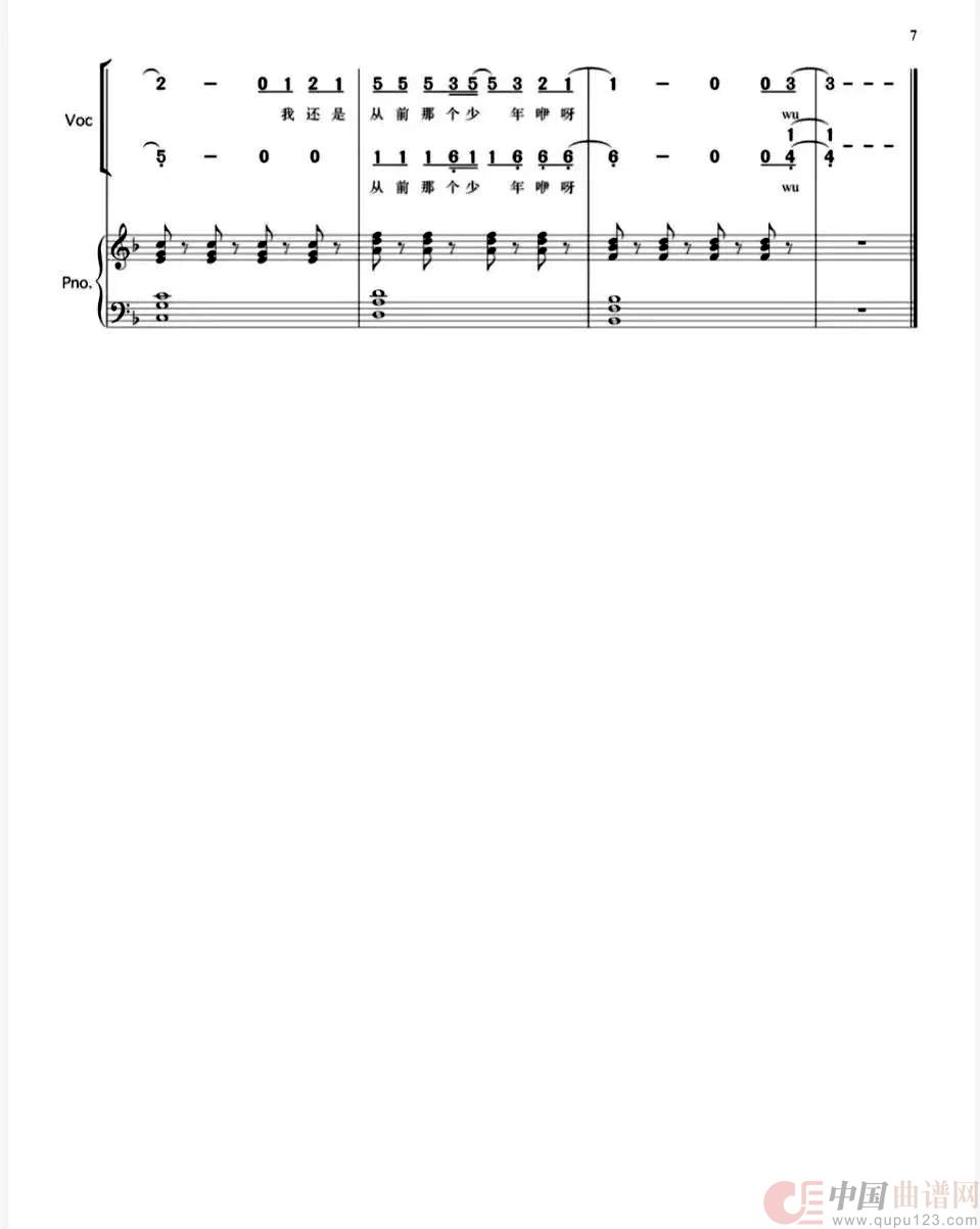 曲谱:少年(带钢琴伴奏谱)(二声部合唱简谱)