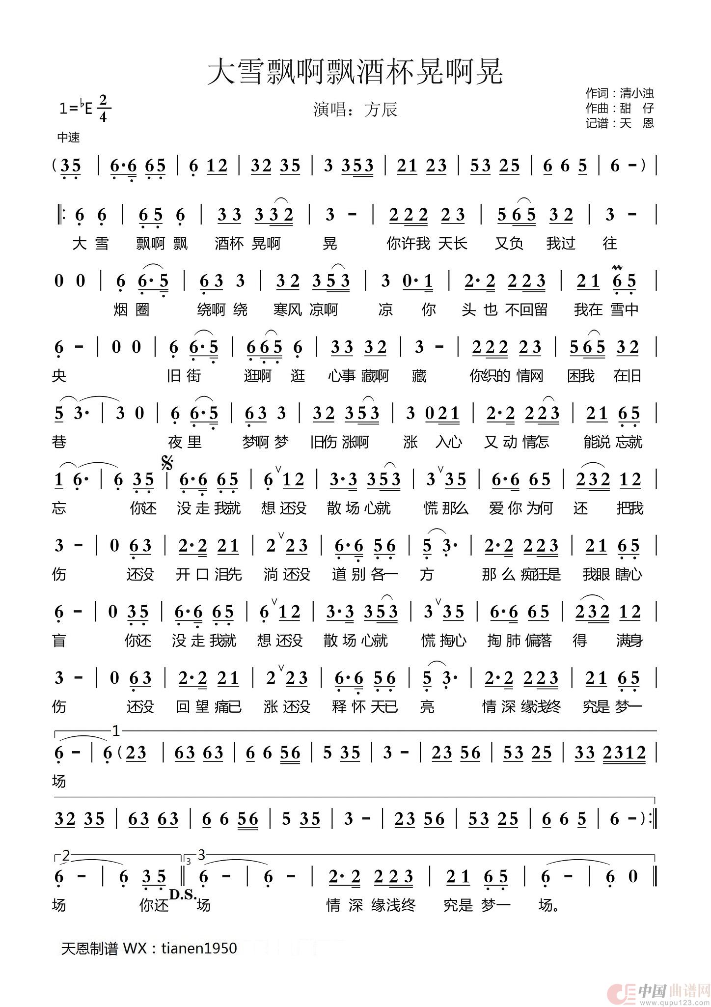 曲谱:大雪飘啊飘酒杯晃啊晃