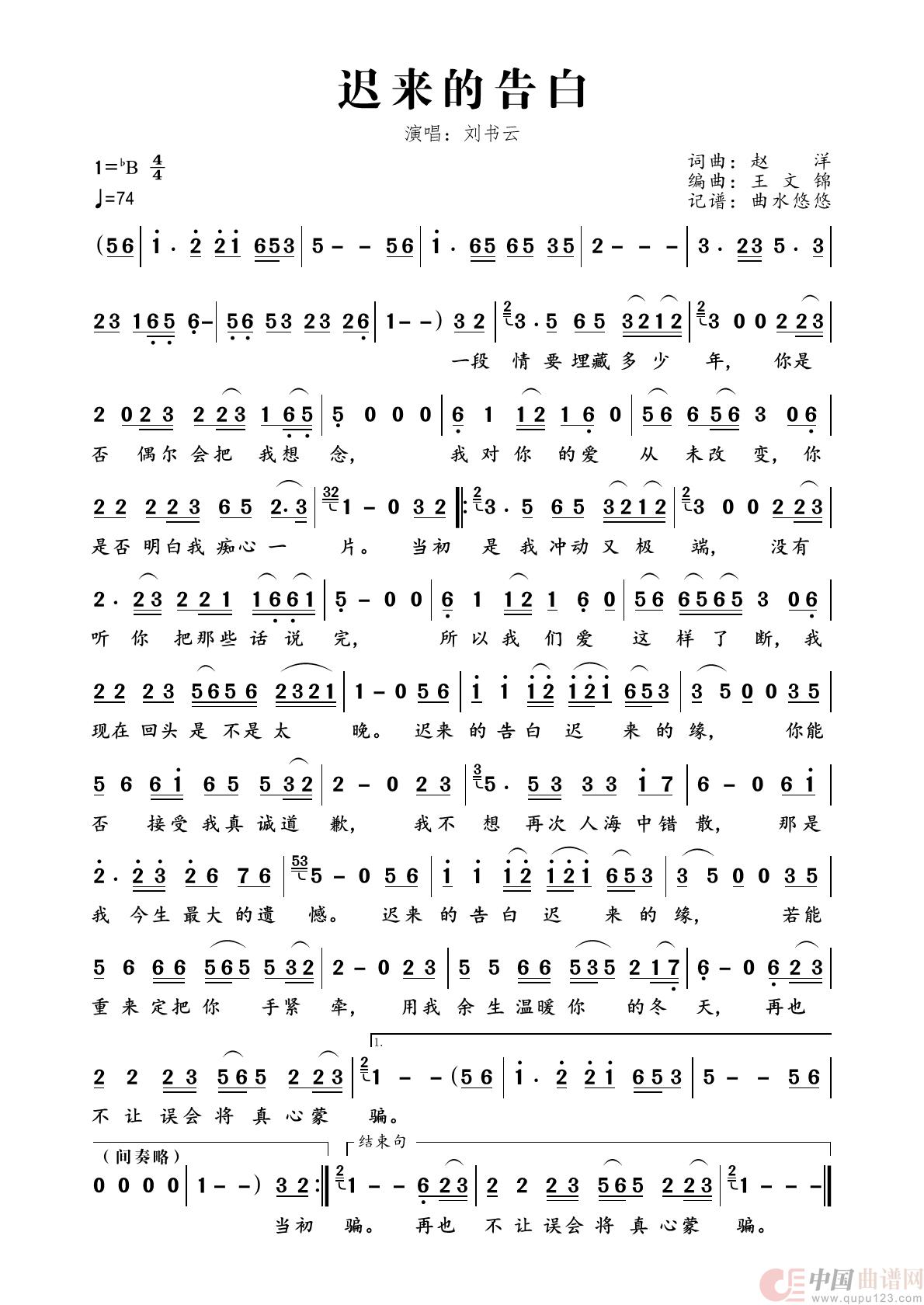 曲谱:迟来的告白