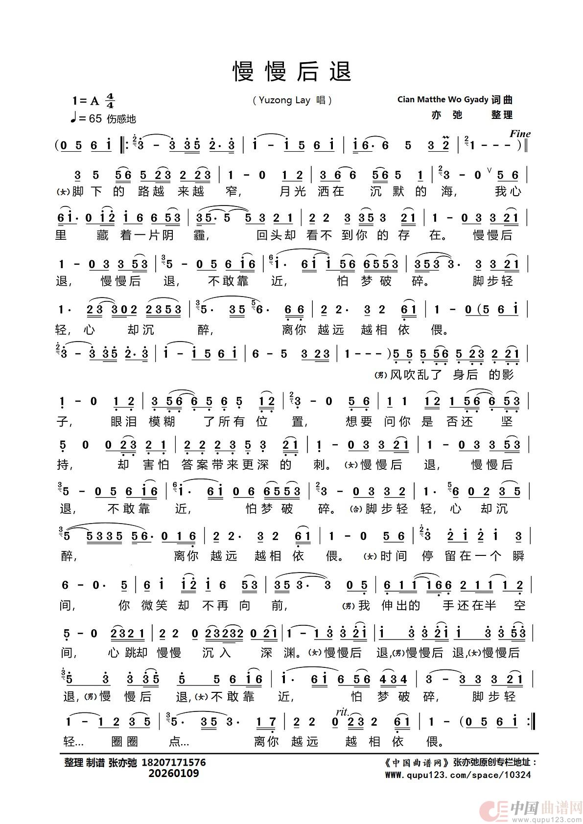曲谱:慢慢后退(亦弛整理)