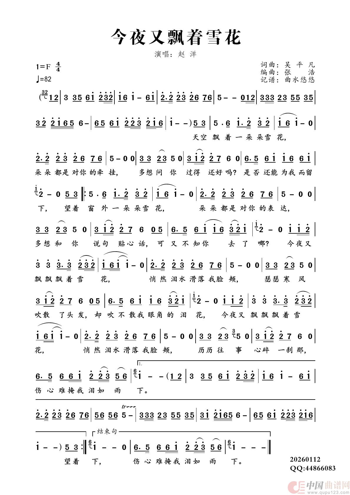 曲谱:今夜又飘着雪花