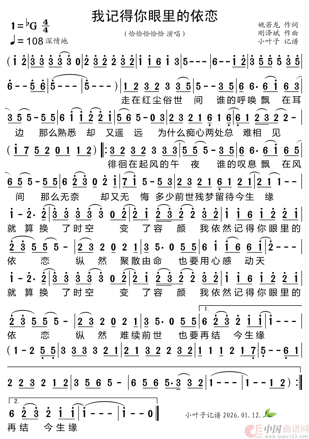 曲谱:我记得你眼里的依恋