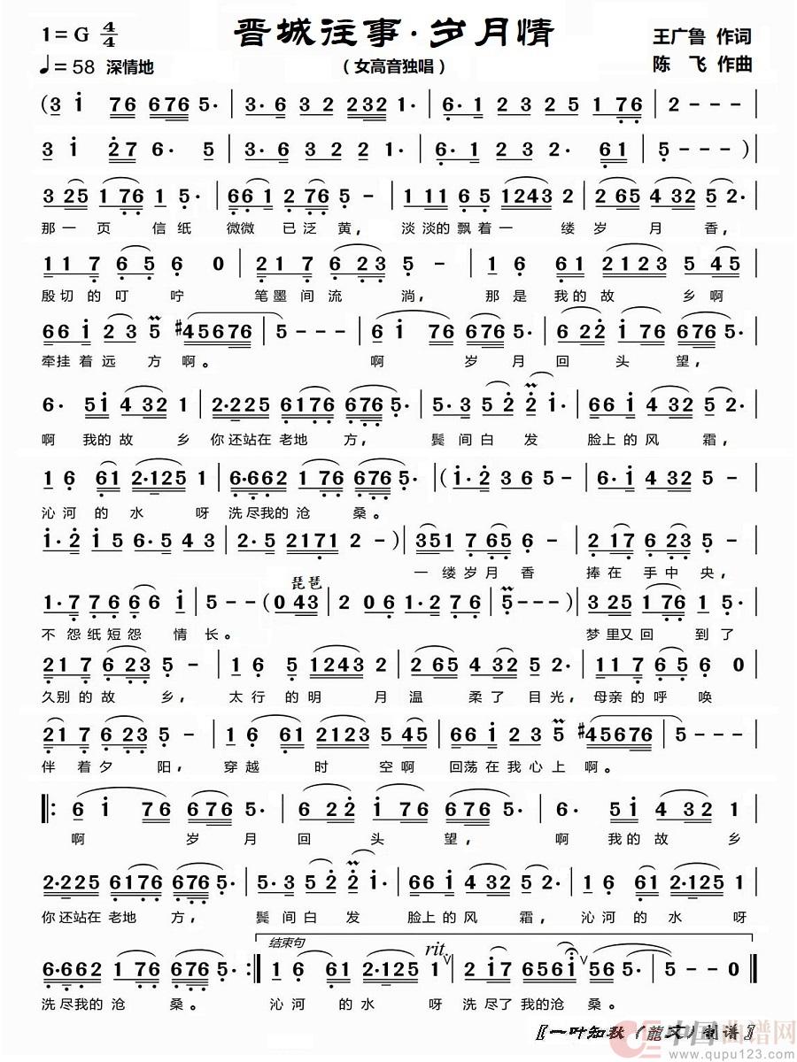 曲谱:晋城往事.岁月情(女高音独唱)