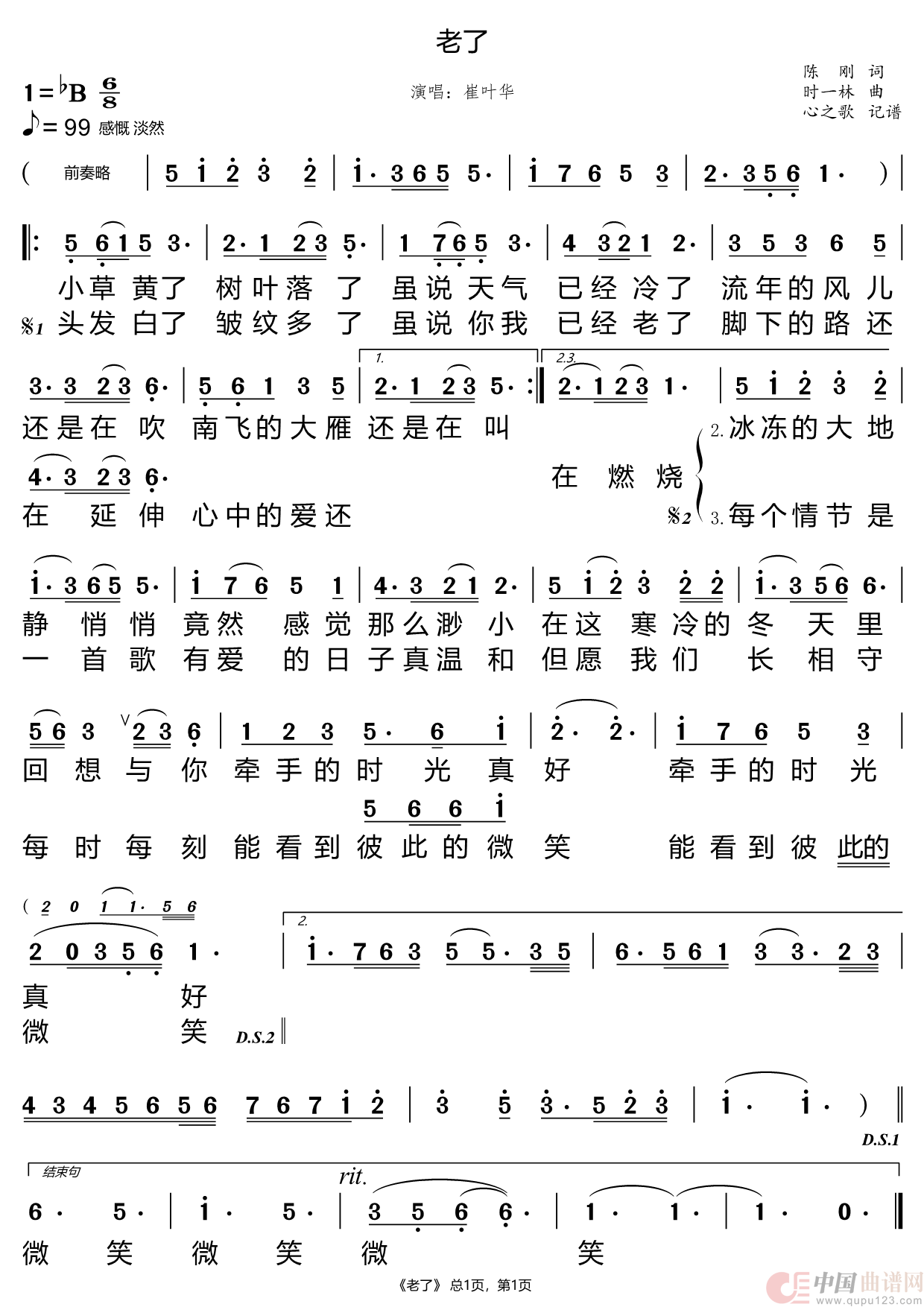 曲谱:老了(崔叶华)