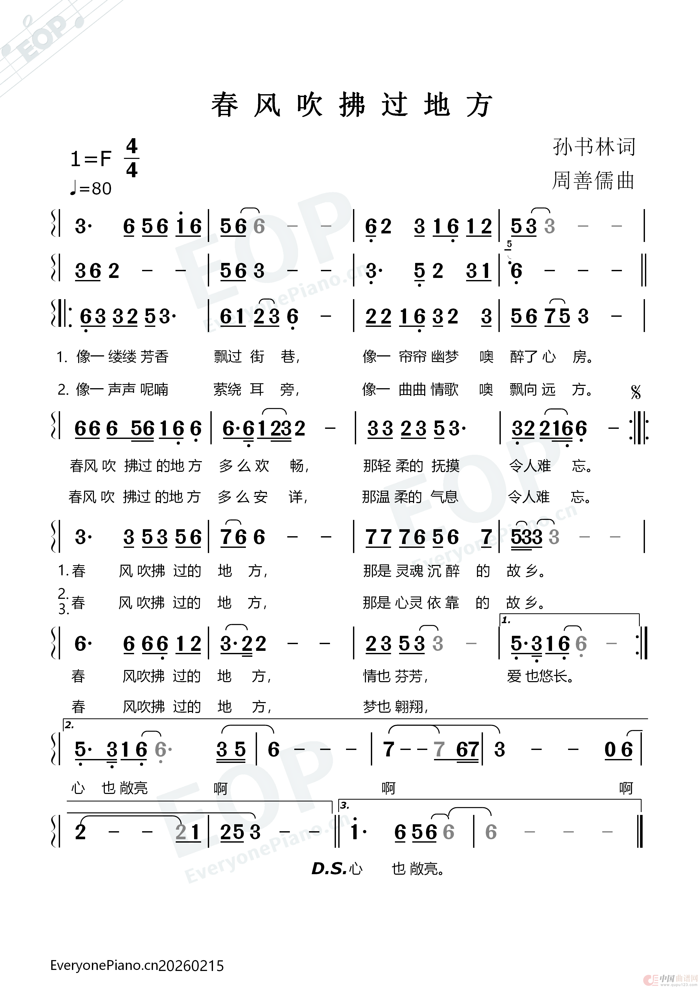 曲谱:春风吹拂过的地方