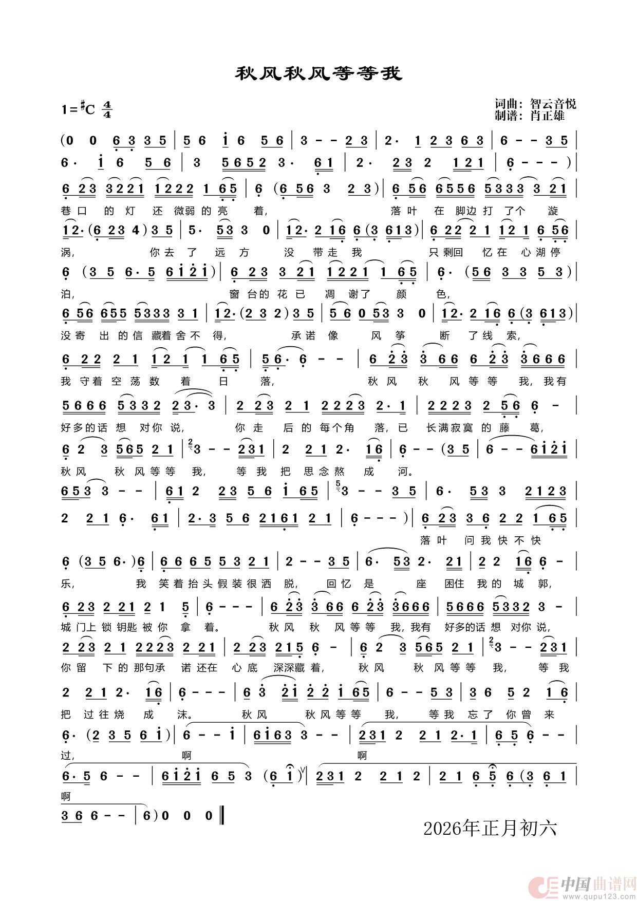 中国曲谱网所有曲谱及资料均为作者提供或网友推荐收集整理而来,仅供爱好者学习和研究使用,版权归原作者所有。如本站内容有侵犯您的合法权益,请和我们取得联系,我们将立即改正或删除。