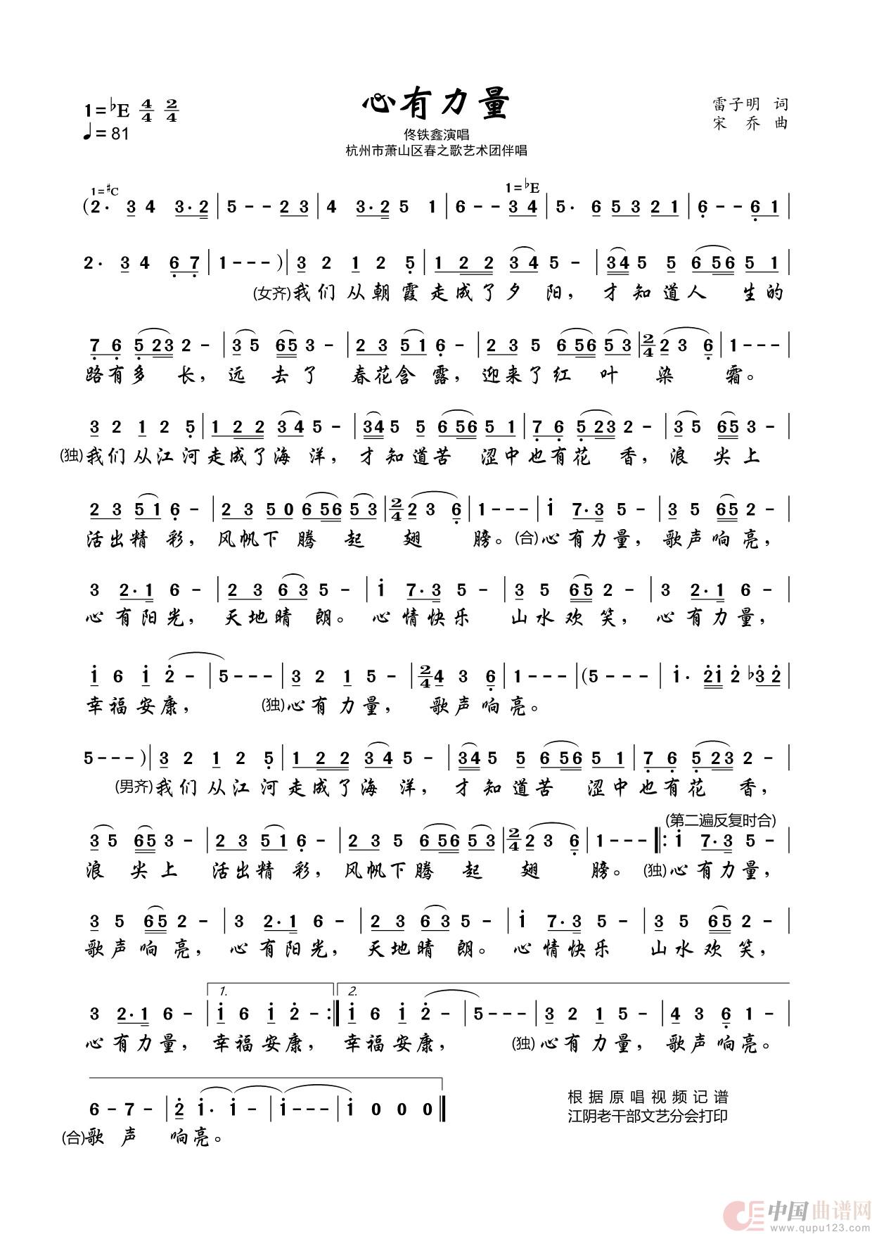 曲谱:心有力量(佟铁鑫演唱)