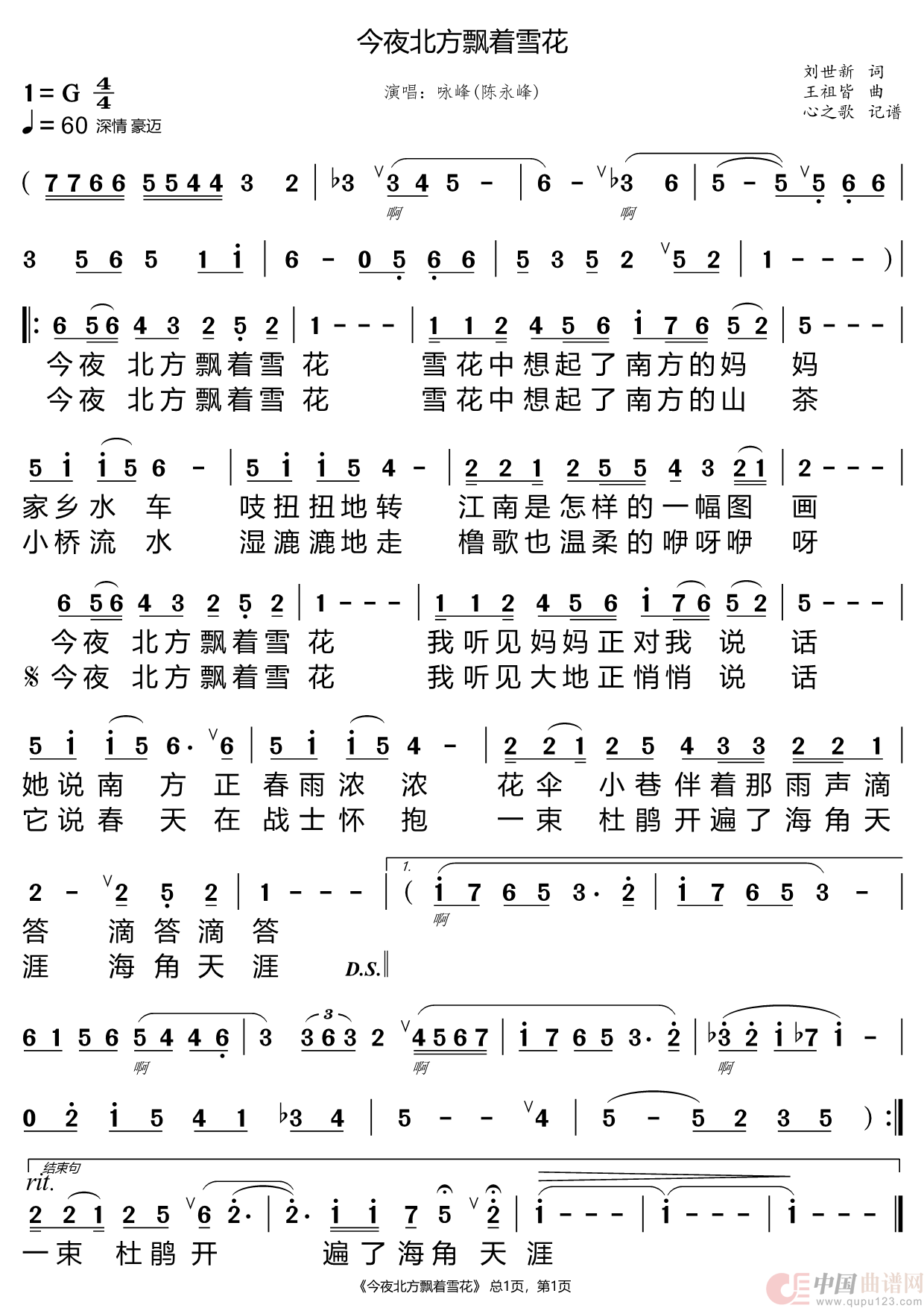 曲谱:今夜北方飘着雪花(咏峰)