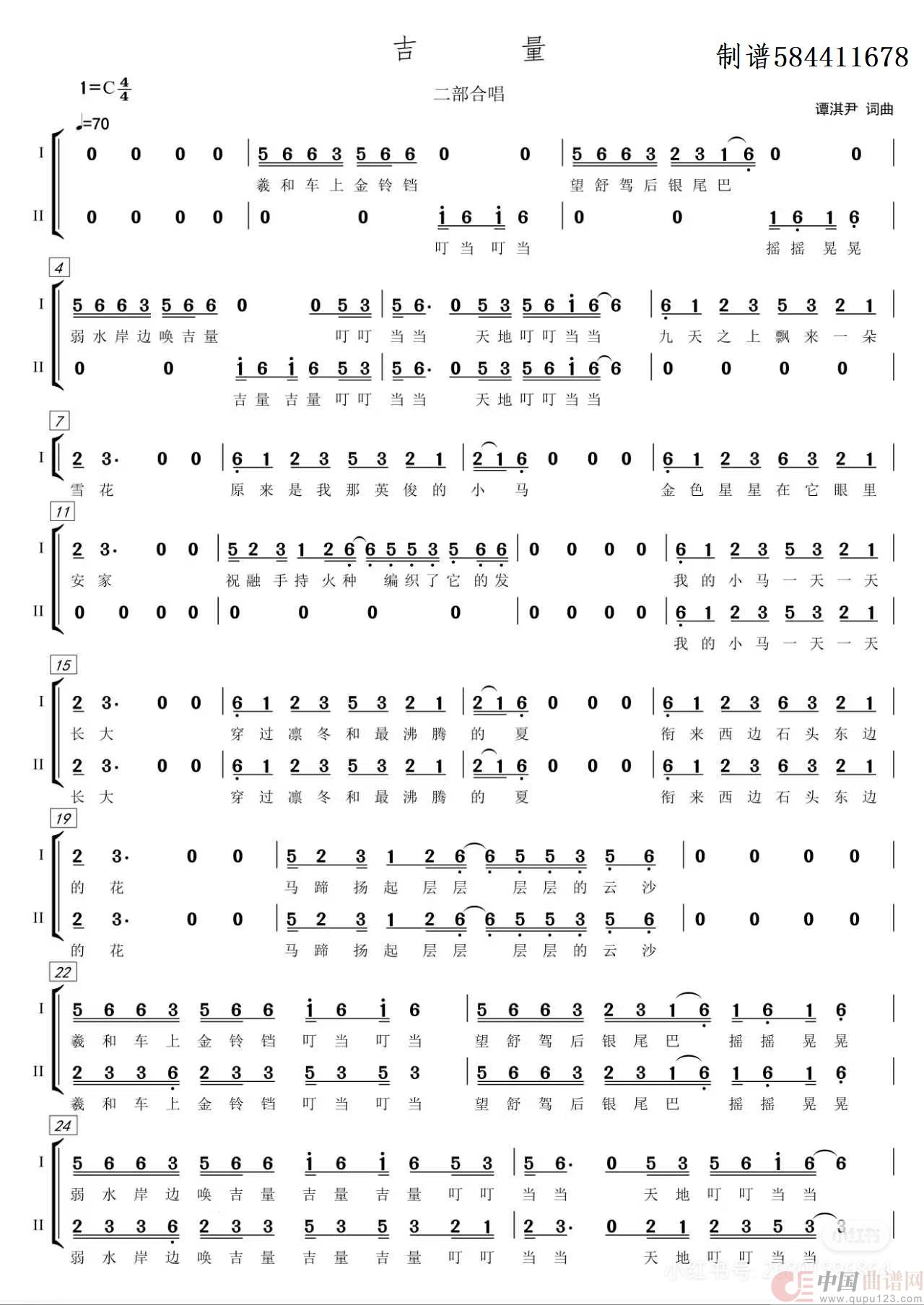 曲谱:吉量二部合唱简谱