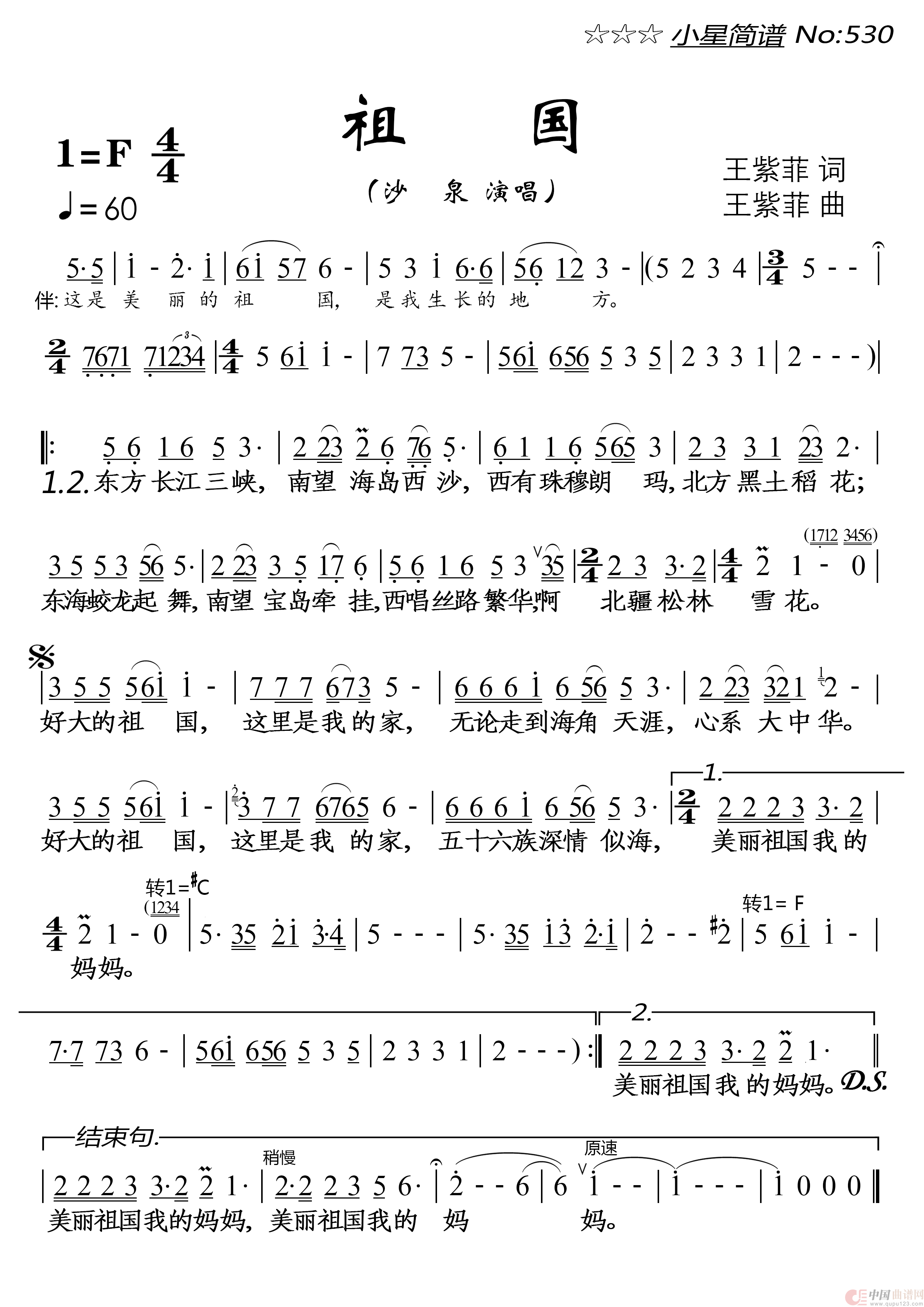 曲谱:祖国