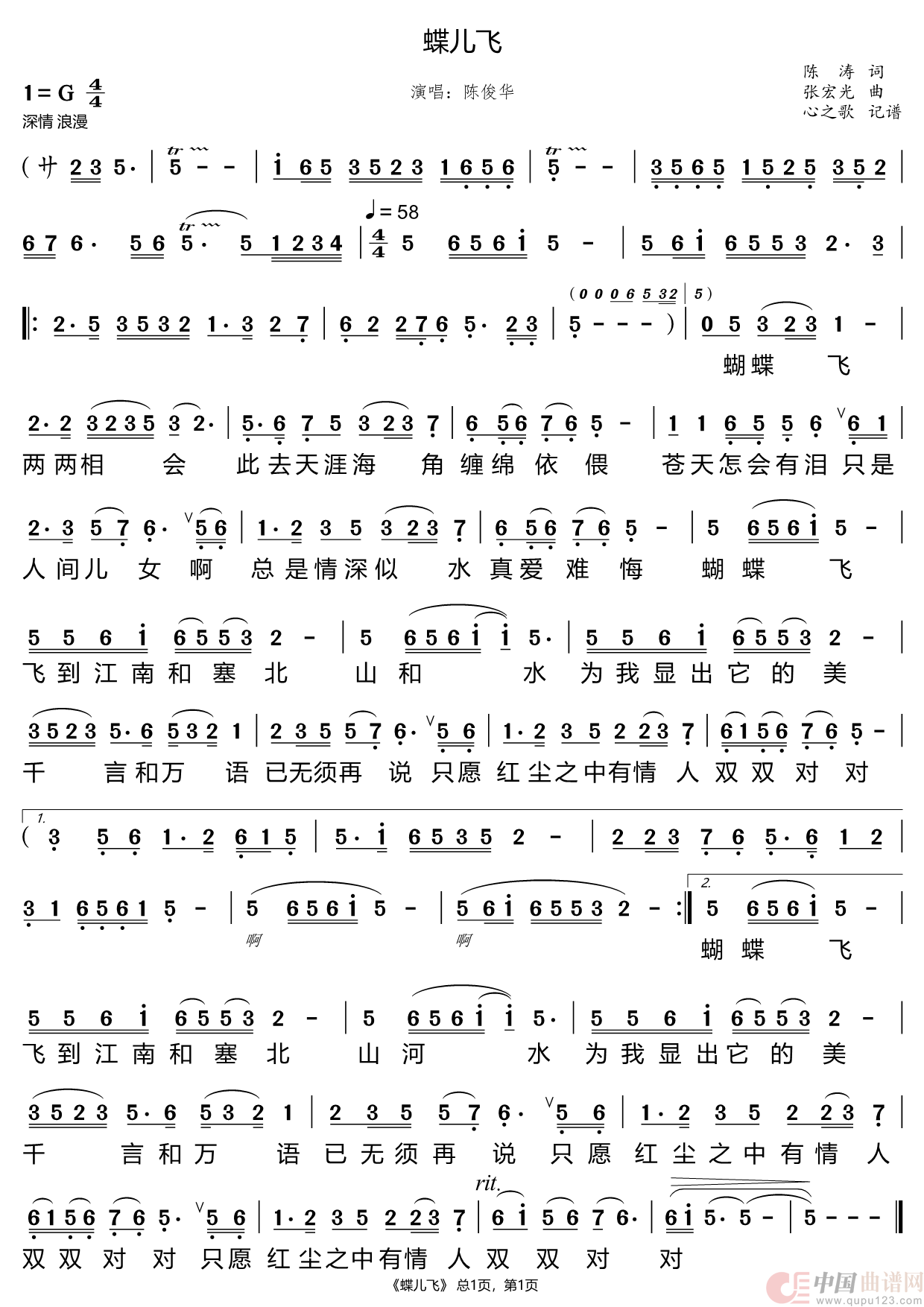 曲谱:蝶儿飞(陈俊华)