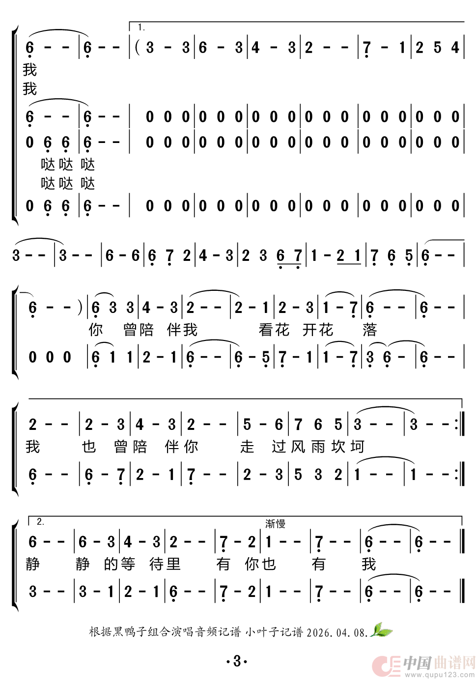 中国曲谱网所有曲谱及资料均为作者提供或网友推荐收集整理而来,仅供爱好者学习和研究使用,版权归原作者所有。如本站内容有侵犯您的合法权益,请和我们取得联系,我们将立即改正或删除。