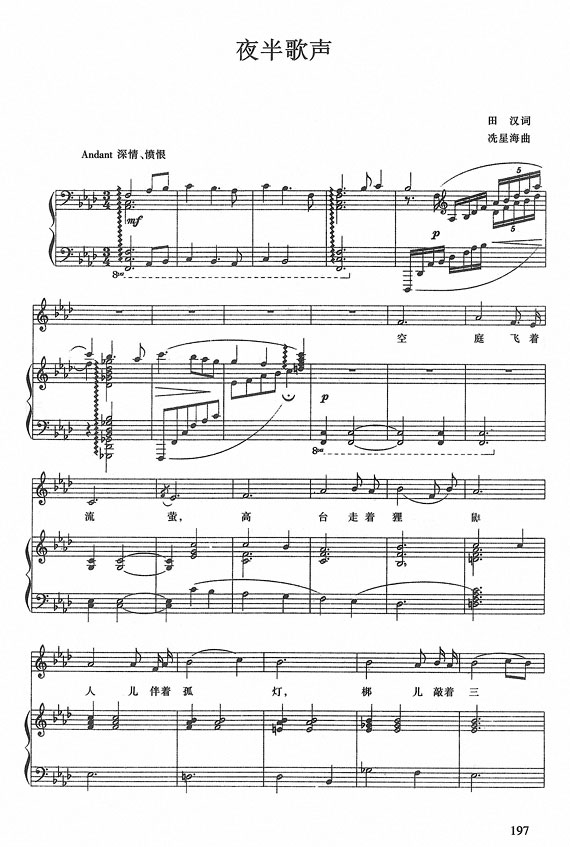 曲谱:夜半歌声(田汉词 冼星海曲、同名电影主题曲、正谱)