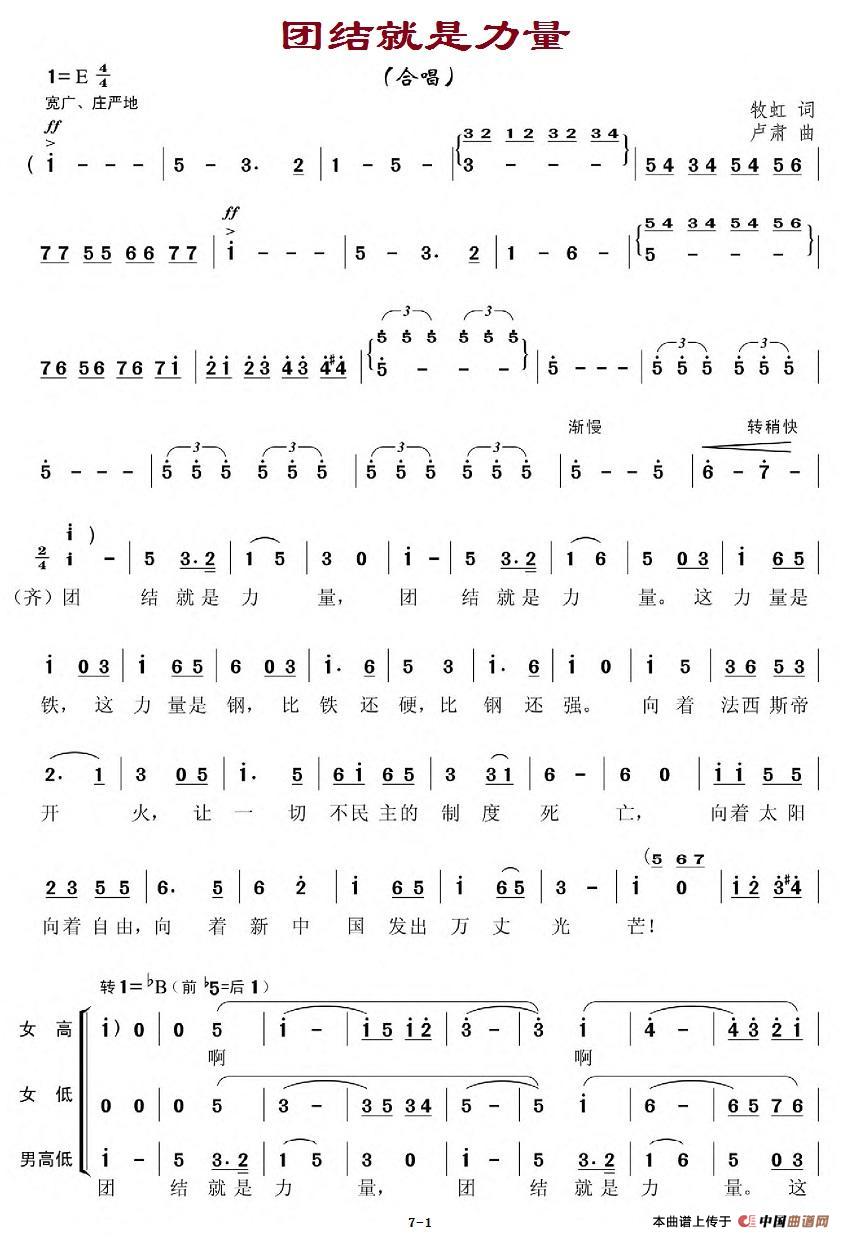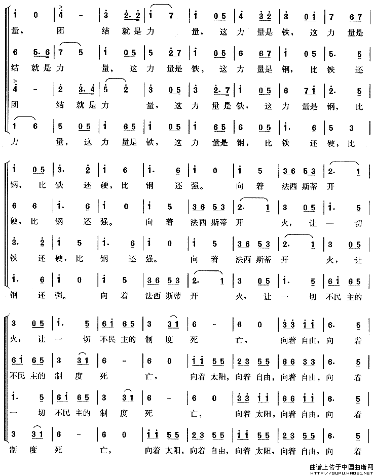 关于《团结就是力量》曲谱的评论