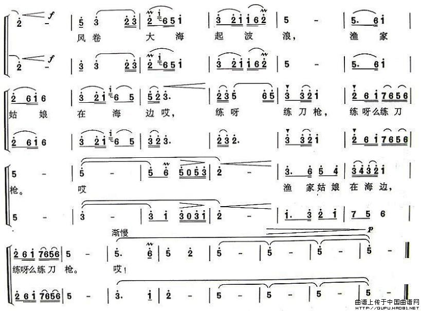 关于《渔家姑娘在海边》曲谱的评论