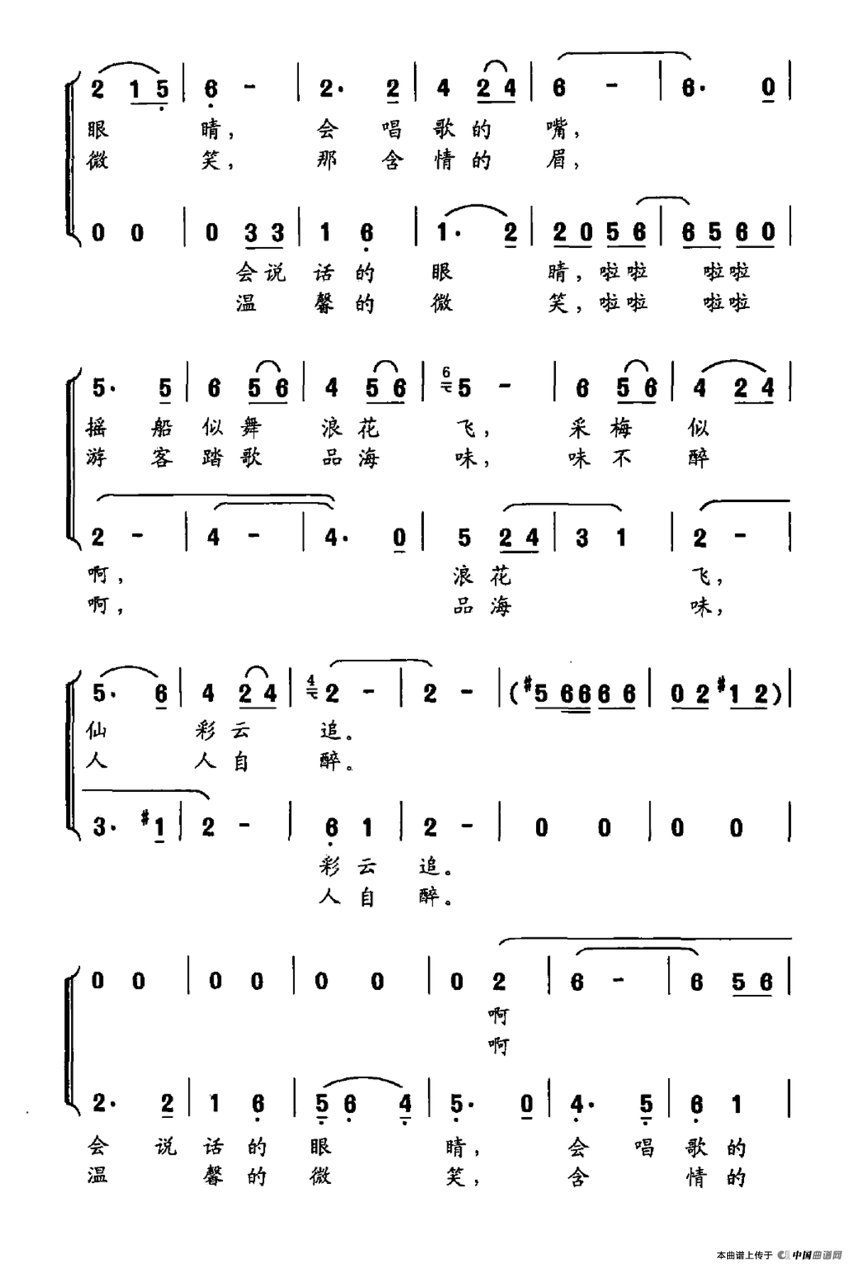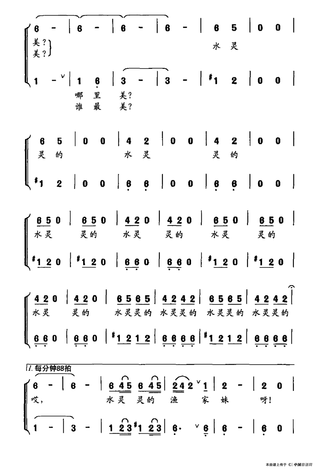 提示:在曲谱图片上单击右键,选择“图片另存为...”即可将曲谱保存到您的电脑中,打印时候可将图片插入到WORD中,调整合适大小打印即可。