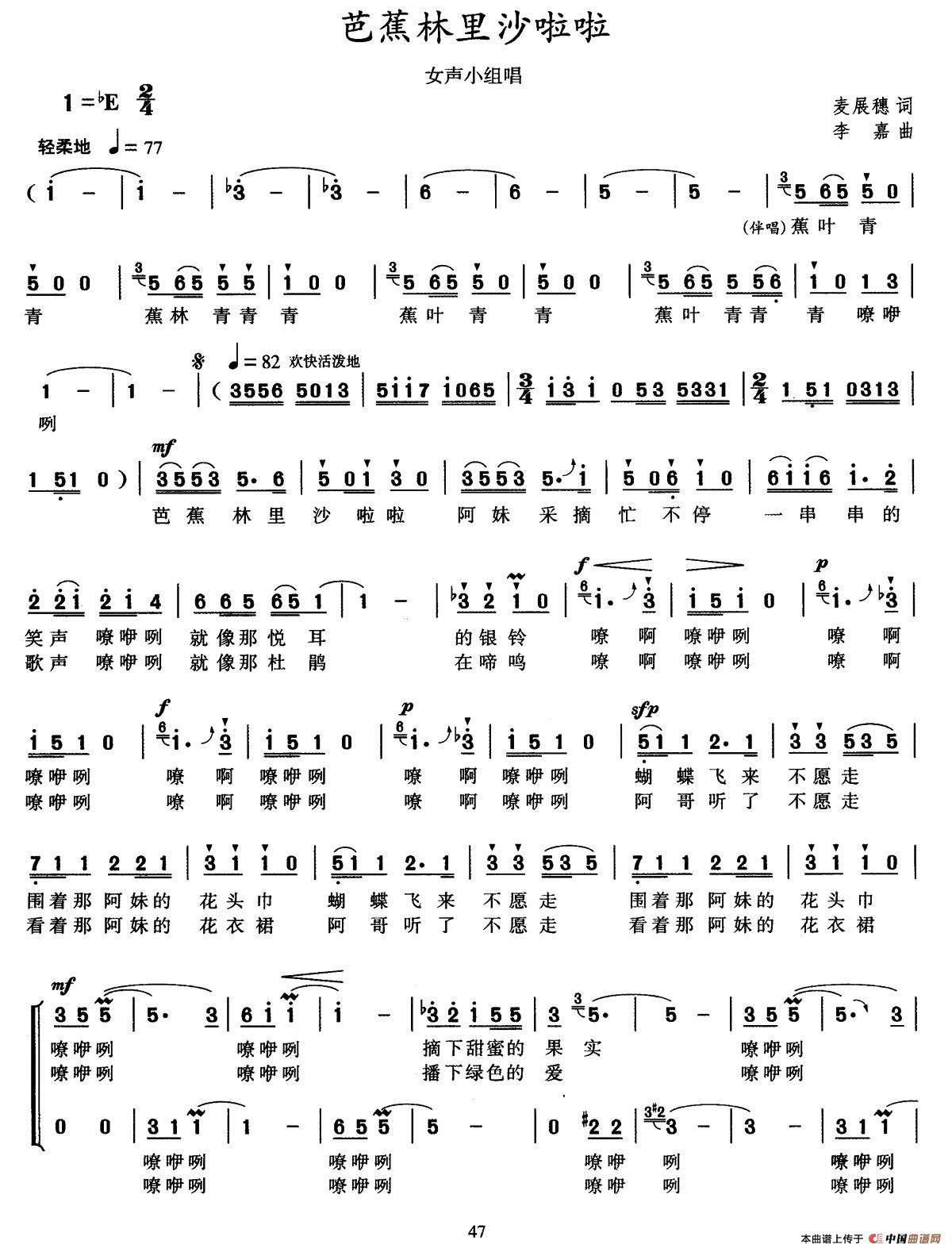 关于《芭蕉林里沙啦啦》曲谱的评论