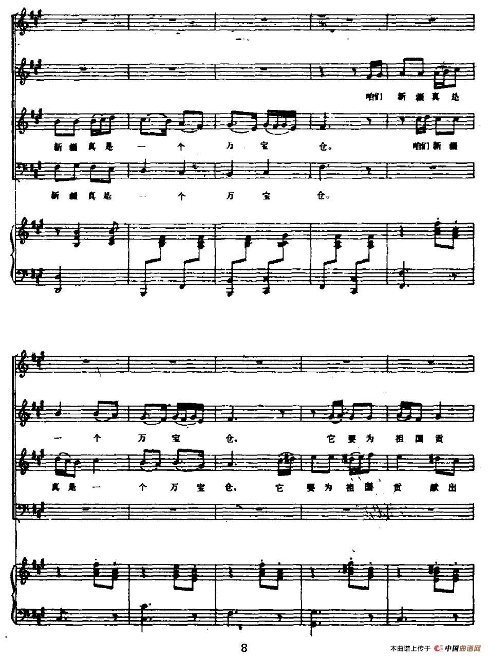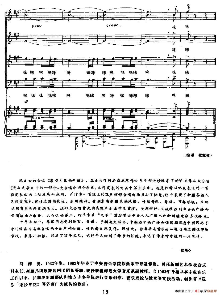 关于《歌唱美丽的新疆》曲谱的评论