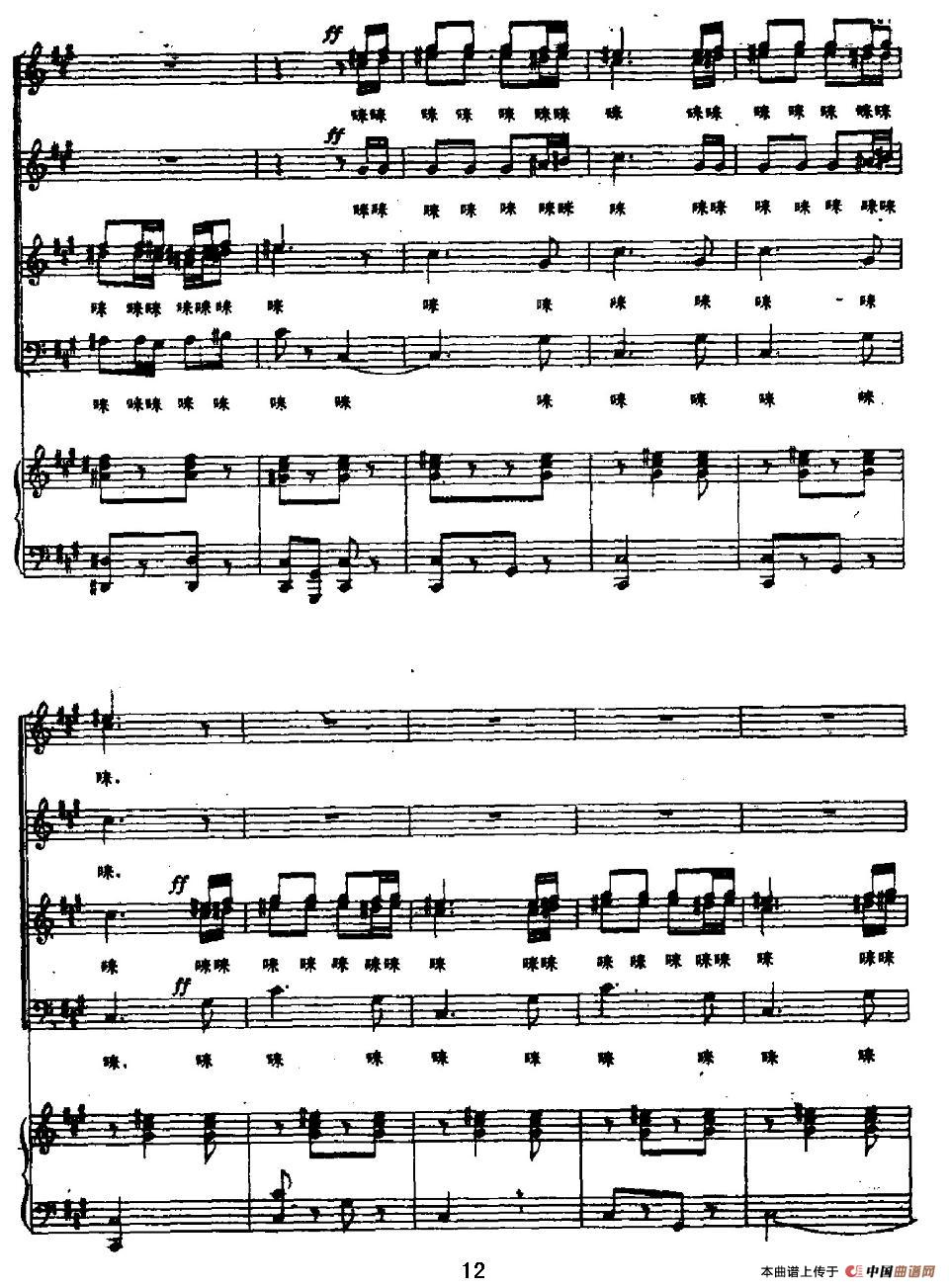 提示:在曲谱图片上单击右键,选择“图片另存为...”即可将曲谱保存到您的电脑中,打印时候可将图片插入到WORD中,调整合适大小打印即可。