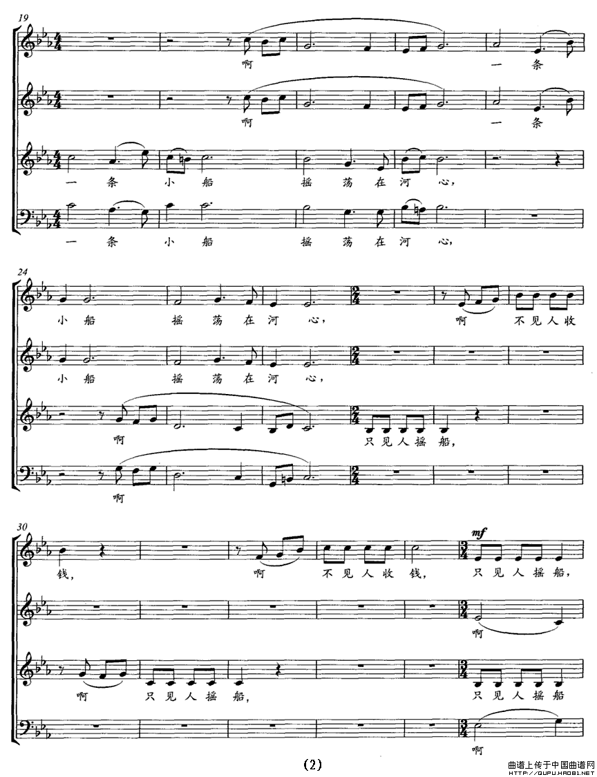 一条小船(无伴奏合唱、五线谱)