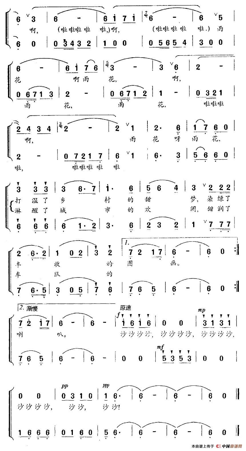 关于《雨花,雨花》曲谱的评论